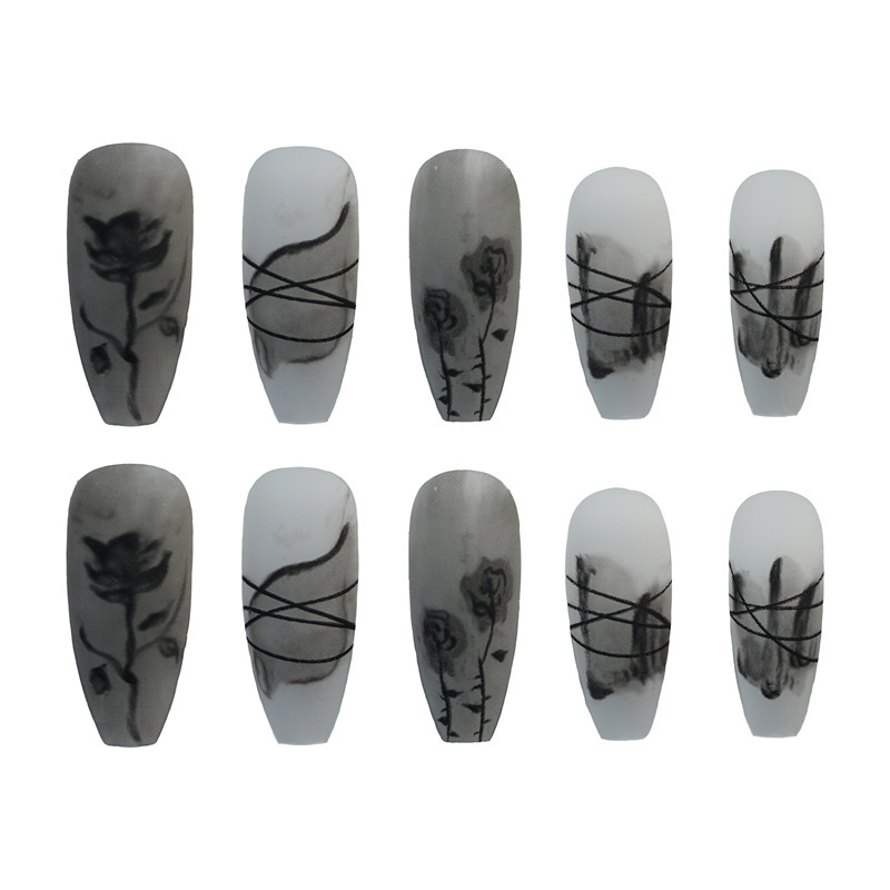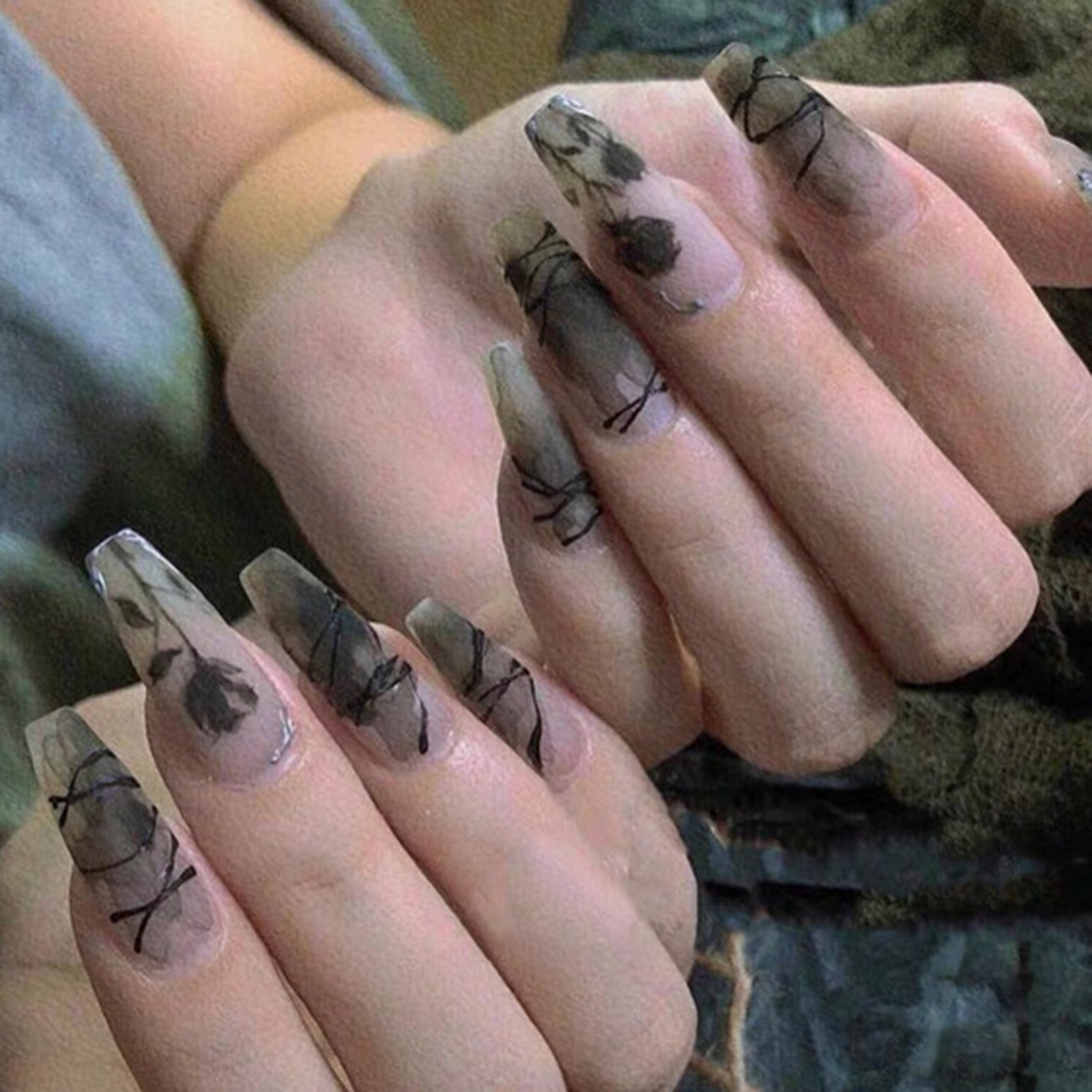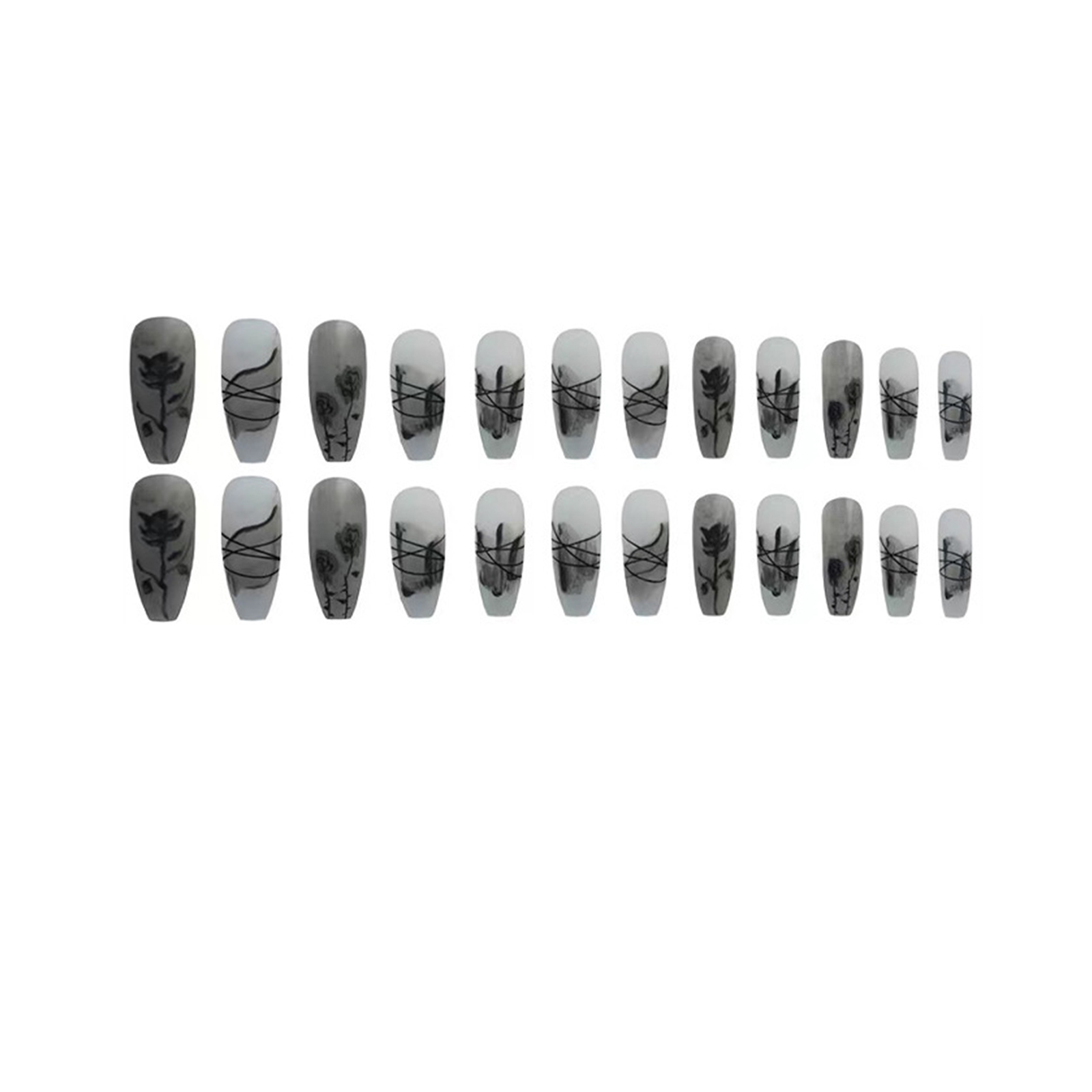 Описание Новинка, хит продаж, 24 шт., черная роза, длинный абзац, Модный маникюр, накладные ногти, экономят время, ношение, накладки для ногтейОсобенности:
