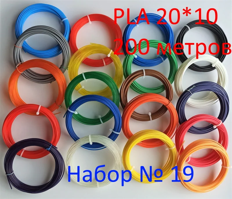 19 набор - 20 цветов по 10 метров = всего 200 метров филамента