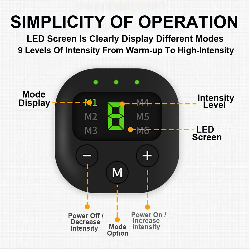 * 【 6 режимов с 9 уровнями 】 перезаряжаемое мышечное фитнес-устройство является профессиональным дизайном для мышечной тренировки, используется для различных физических упражнений, в общей сложности 6 режимов упражнений и 9 уровней интенсивности, от разогрева до интенсивных упражнений и, наконец, расслабления, расслабления и физических упражнений.