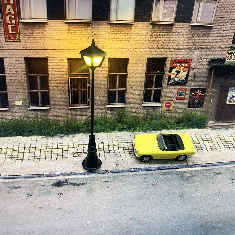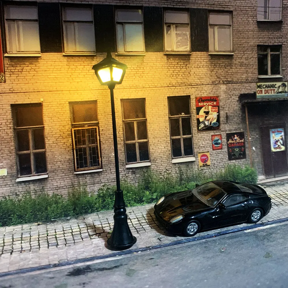 Это верные репродукции дорожного, промышленного и коммерческого наружного освещения, где бы вы ни находились, от городских центров до магазинов одинокой страны. Упаковка из 2 ламп Миниатюрная модель платформы фонаря, лампы высотой 67 мм, и ножка лампы может быть отрегулирована на любую высоту свободно. Освещается низкой мощностью, Долговечные светодиоды SMD 3 вольт;