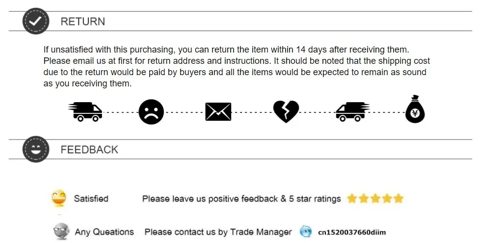 Как отследить мою посылку?Вы можете отследить свою посылку на веб-сайте с вашим номером отслеживания:17track.net/en(Скопируйте в owser, чтобы открыть)