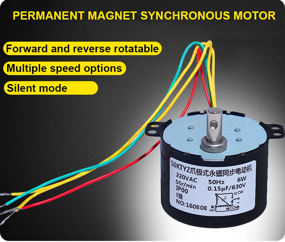 50KTYZ коготь Полюс тип постоянный магнит низкая скорость синхронный двигатель 220 в прямой и обратный управляемый миниатюрный электродвигатель переменного тока 6 Вт