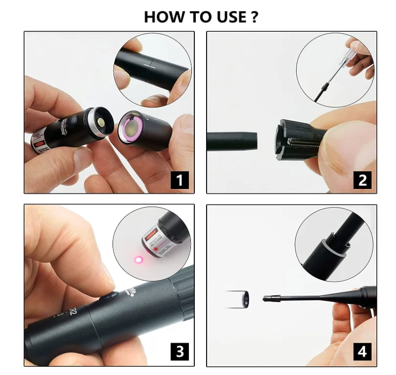 Этот набор sighter состоит из эмиттера, а также серьезных расширяемых адаптеров, которые покрывают все диаметры калибра от. 177 до. 78 дюймов.