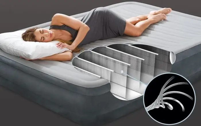 Наличие встроенного электрического насоса 220V. Время надувания кровати 3 минуты.
