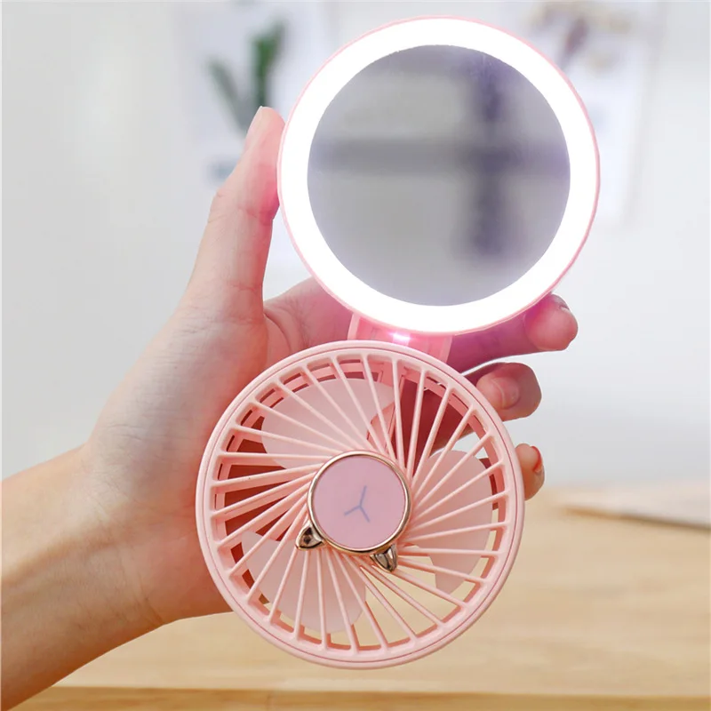 Name: Mirror hand fan Rated power: 2W Voltage: DC5V Battery capacity: 1500mA Product material: ABS plastic Product accessories: lanyard, charging cable Function: Three-speed wind speed adjustment, two-speed makeup mirror Net weight: about 150g