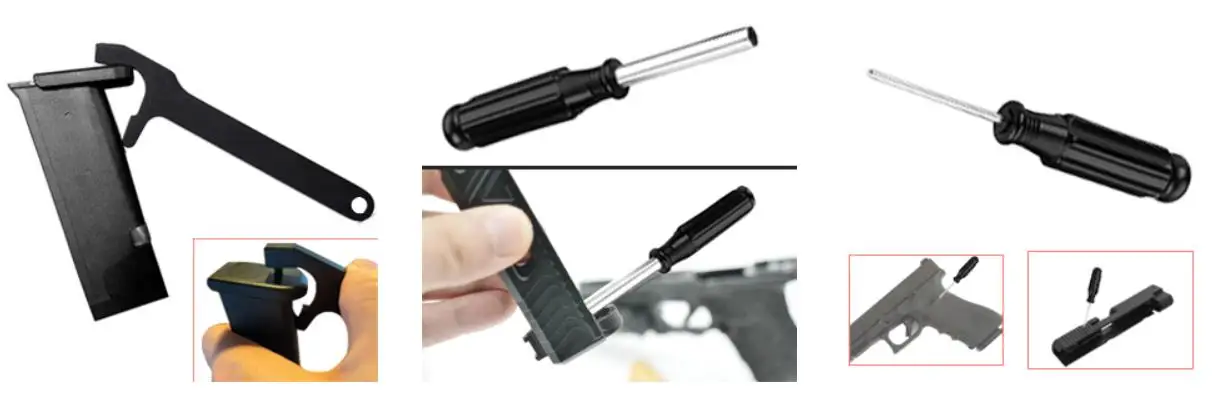 Инструмент для демонтажа всех штифтов на пистолетах Glock. Нет острых краев, чтобы поцарапать пистолет. Совместимость с журналами GLOCK. Изготовлен из прочного материала.