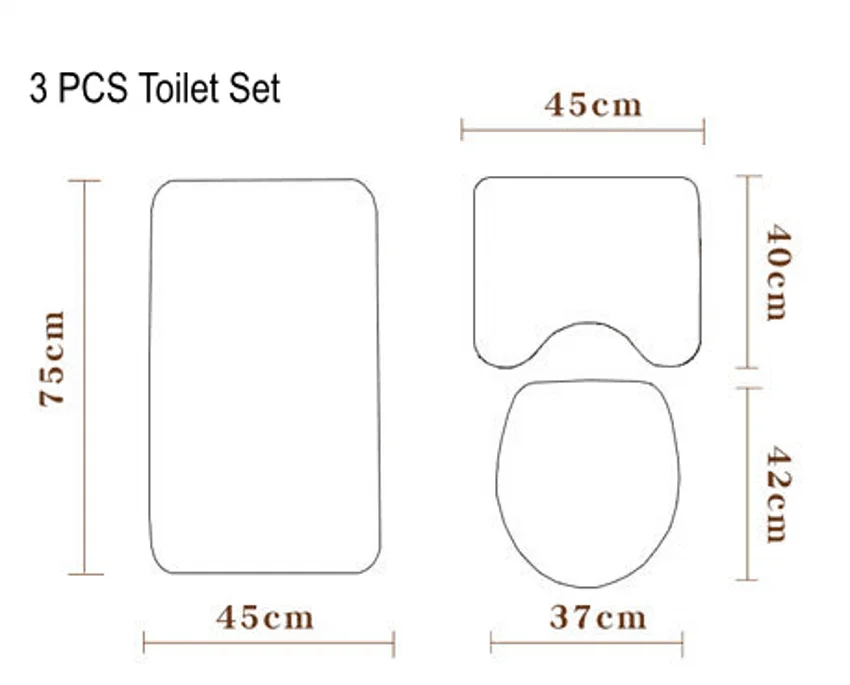 3 шт. набор для унитаза: коврик для ванной 75x45 см, u-образный коврик 45x40 см, круглая крышка для унитаза 42x37см