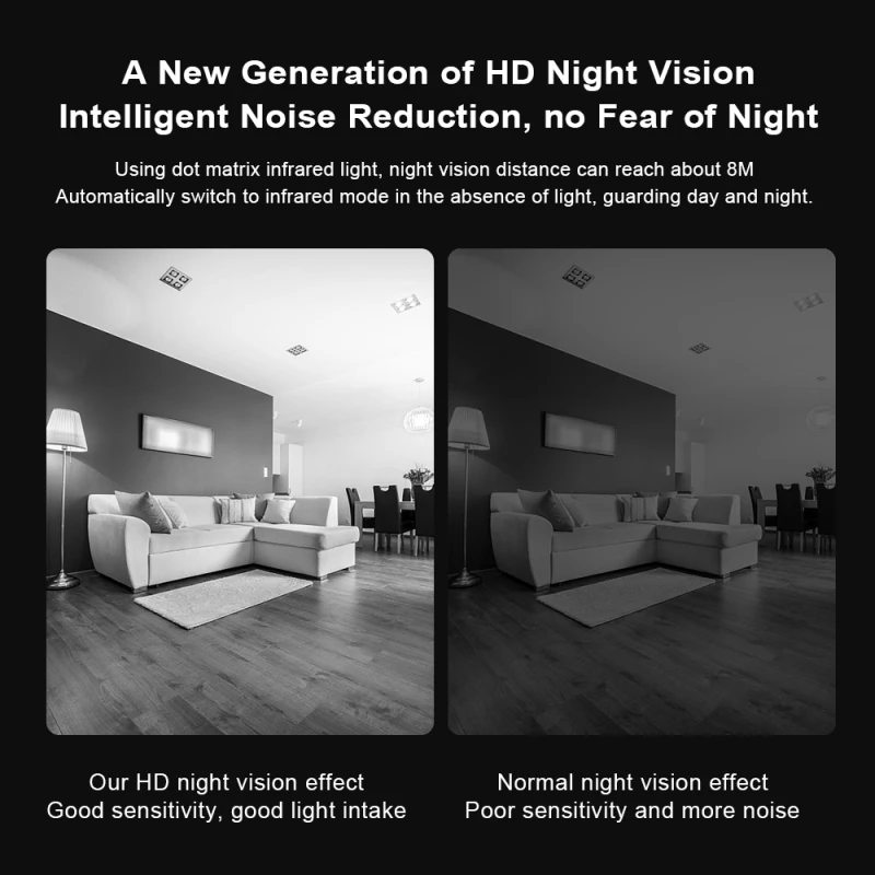 【Интеллектуальное инфракрасное устройство ночного видения высокой четкости】Оснащен высокочувствительными датчиками и мощный светодиодный прибор ночного виденияОсвещение. Высокое разрешение не изменит цвет и автоматически компенсирует отсутствие светильник. Изображение более яркое и нежное, и вы можете следить за ночью.