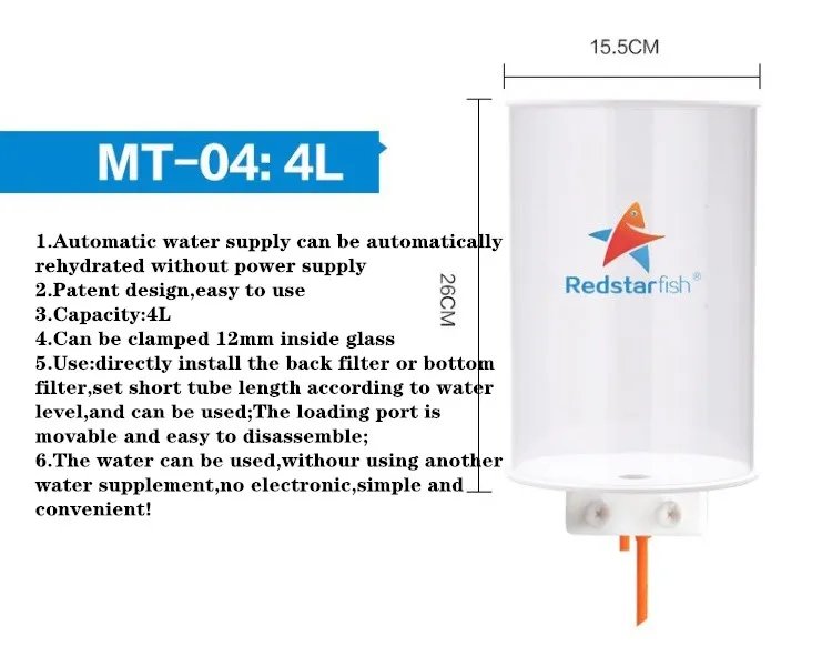 2/4L Авто сверху от наполнителя воды аквариумный коралловый резервуар для наполнения воды бочонок разработан в соответствии с принципом сифона может быть установлен аквариумом или затонувшей Важное замечание: стеклянные зажим подходит для отсечения 10/12 мм толщины бак стекло; Изделие подходит для небольших и средних Тнак; пожалуйста, установите prodcut, размещая изображение на левой стороне и информацию ниже; Вы можете заполнить воду в Продукт перед тем, как у вас есть план травли или выйти на работу в течение нескольких дней, но, пожалуйста, подумайте, как долго продукт может держать предложение воды для ваших резервуаров, потому что он может содержать только 4L воды в Продукт. Должна быть одна короткая трубка и одна длинная трубка. Короткая трубка представляет собой воздухозаборную трубу/трубку для контроля уровня воды и shoud быть вырезаны на 45 градусов, чтобы избежать блокировки. Более длинный должен быть длиннее, чем короткий, около 3 см. Наденьте резиновый круг на соединение для наполнения водой, а затем затяните его после заполнения водой, а затем вставьте одну короткую мягкую трубку и одну длинную мягкую трубку, чтобы она могла работать. Соединение для наполнения воды-это режим прямого соединения. Затяните соединение после заполнения бочка, а затем вставьте одну короткую трубку и одну длинную трубку, затем она может работать.