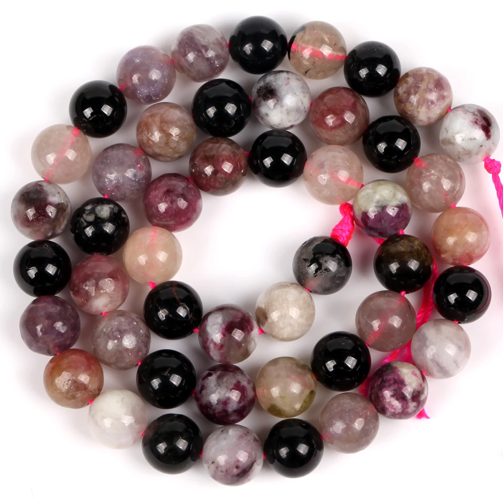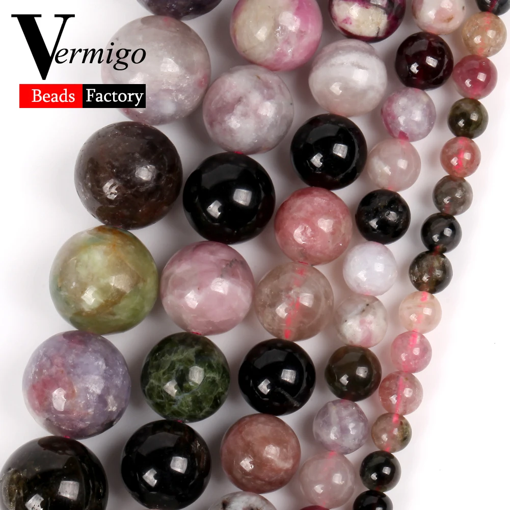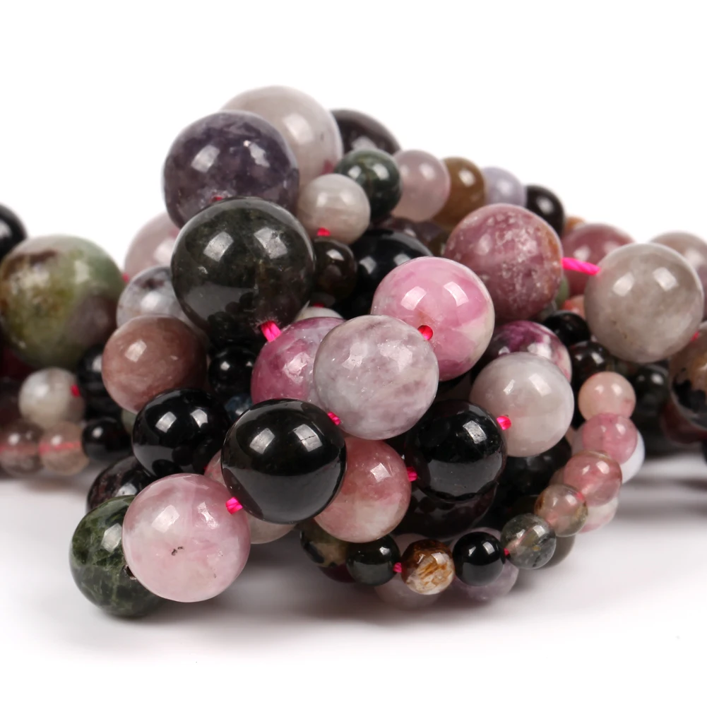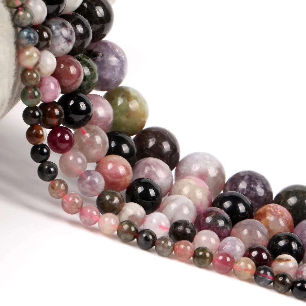 A + натуральный красочные турмалиновым каменем Пластиковые Круглые бусины для самостоятельного изготовления ювелирных изделий для браслетов и ожерелий, 4/6/8/10/12 мм