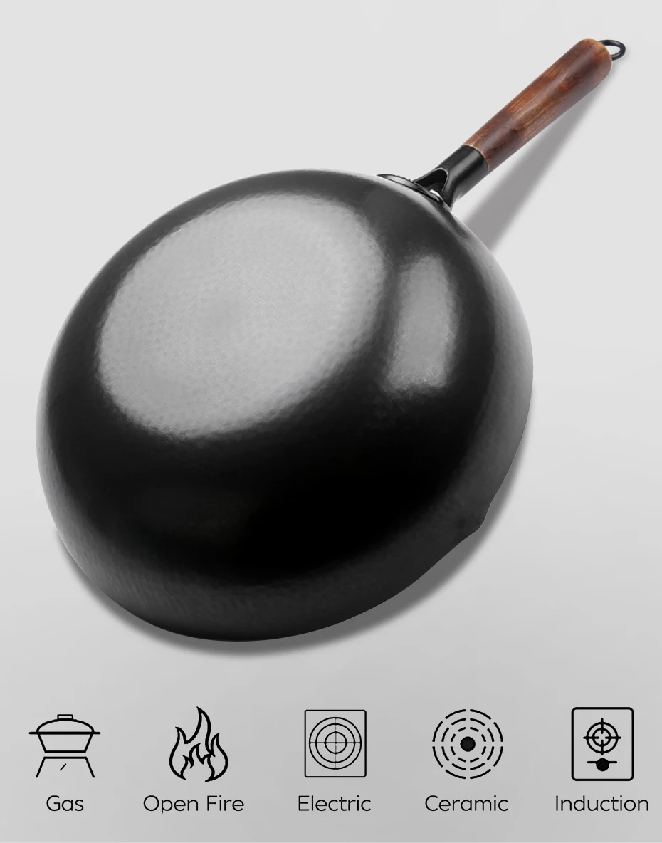 1 шт. * Железный вок с деревянным покрытиемУтюжок, высокое качество, Китайская традиционная посуда, не покрывающая антипригарным покрытием, сковорода, кастрюли для приготовления пищи, Индукционная кухонная утварь