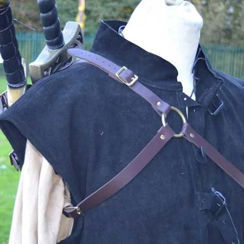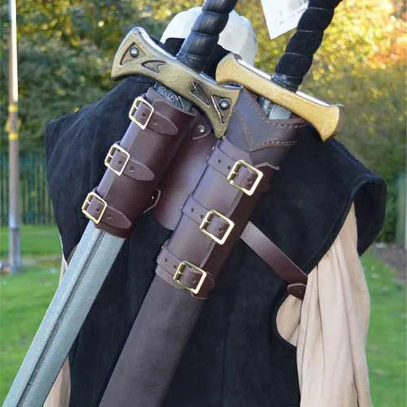 Medieval Knight Back Double Sword Scabbard Vintage Sheath Frog Holder Leather Shoulder Strap Weapon Costume Kit Props For Men