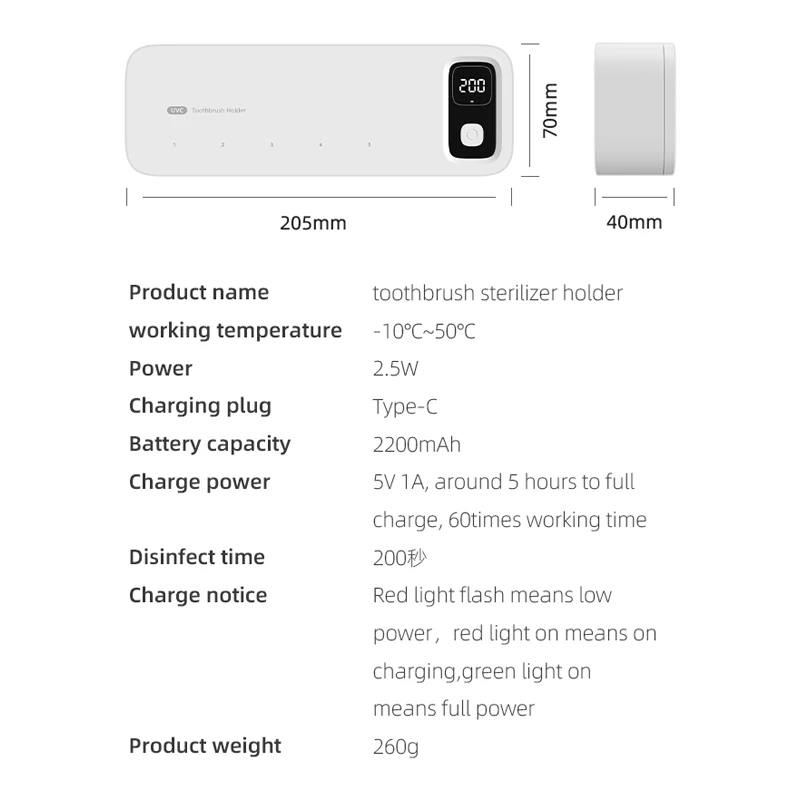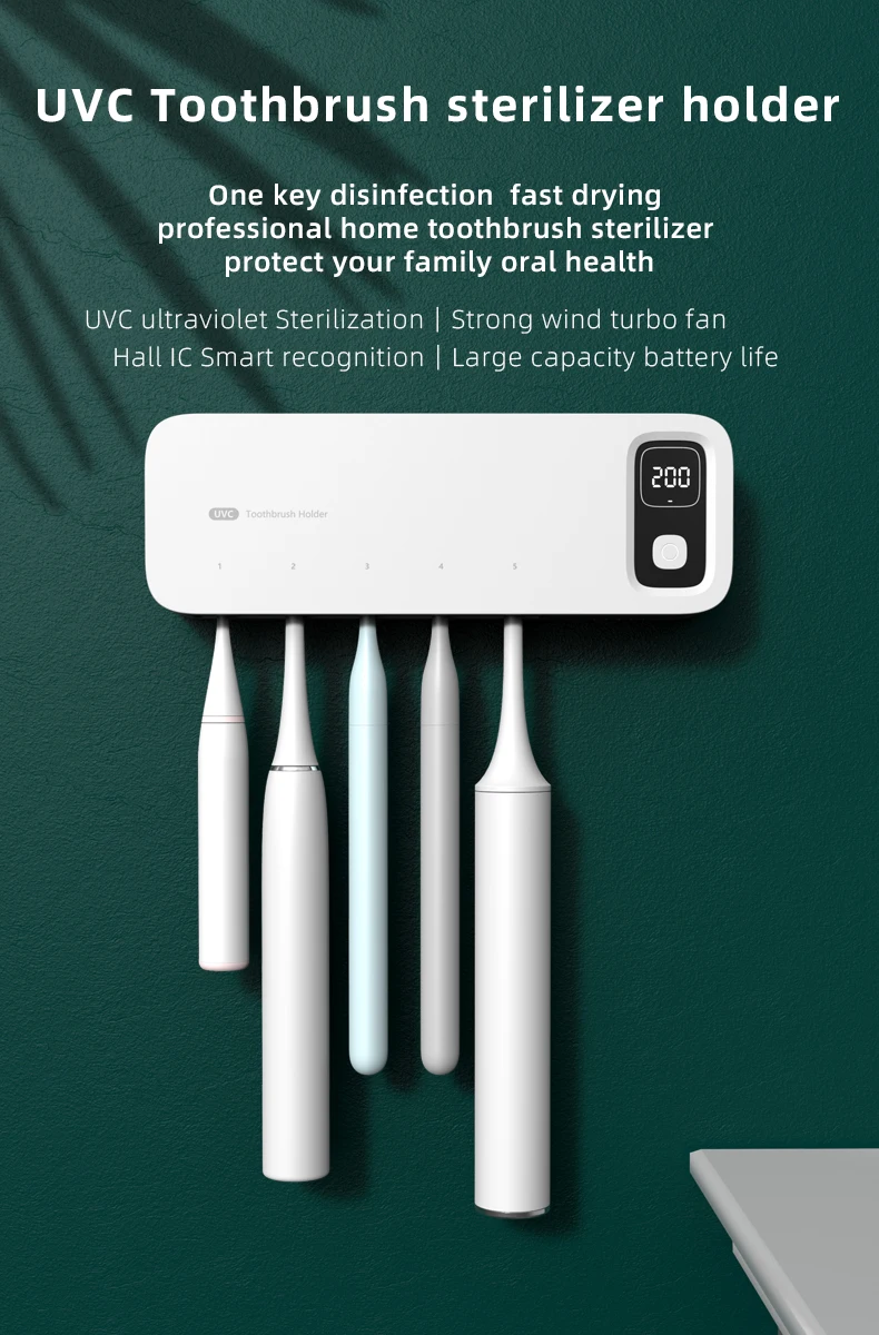 Xiaomi UV Toothbrush Sterilizer Rechargeable Drying Wall-mounted Tooth Brush Holder with LED Display Bathroom Accessories