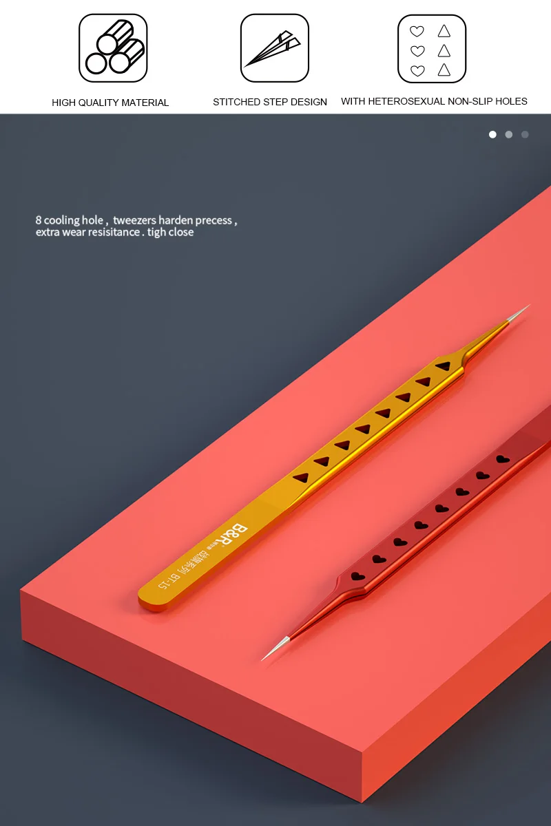 1. Высокоточный пинцет с отверстиями, после многих тестов, создайте образцы.