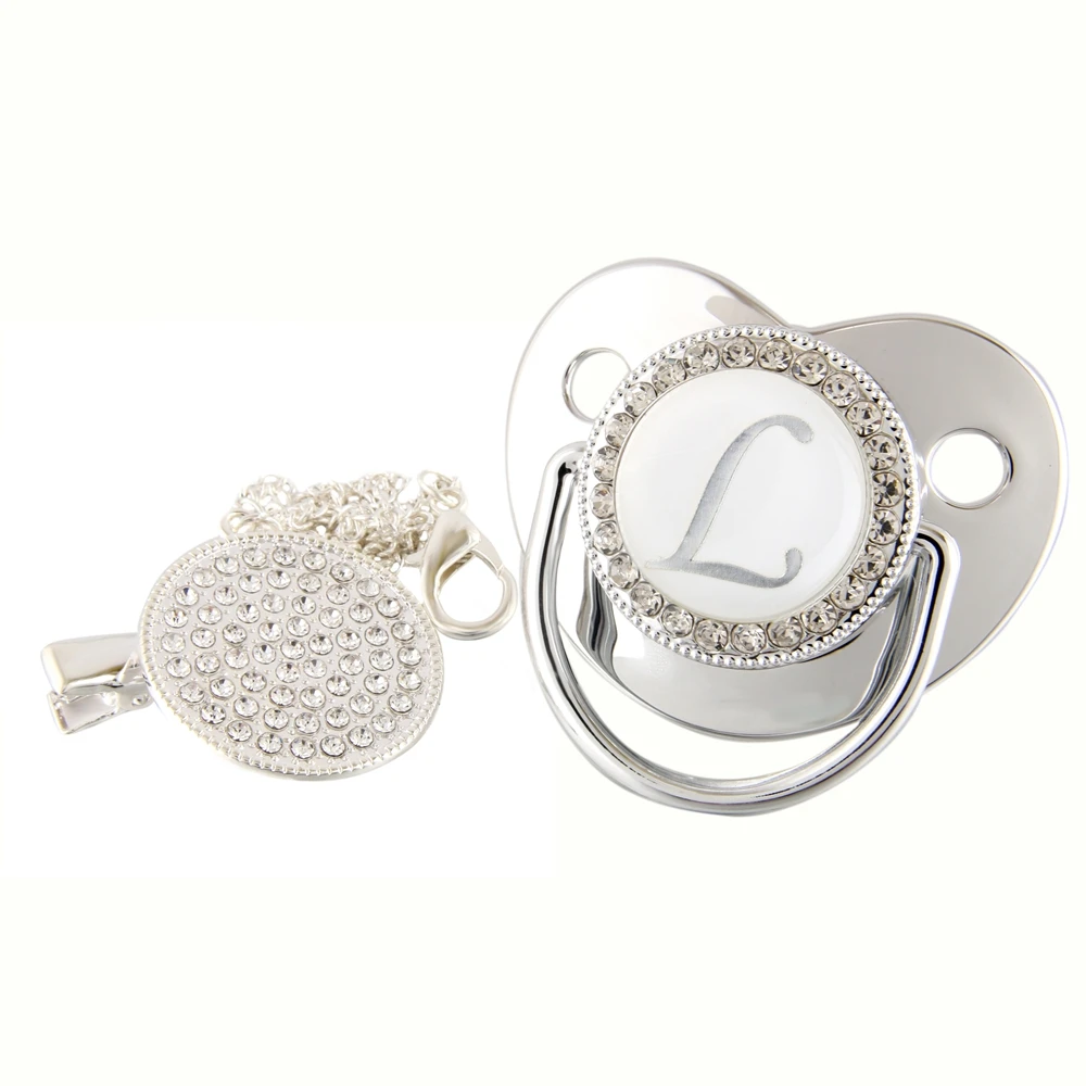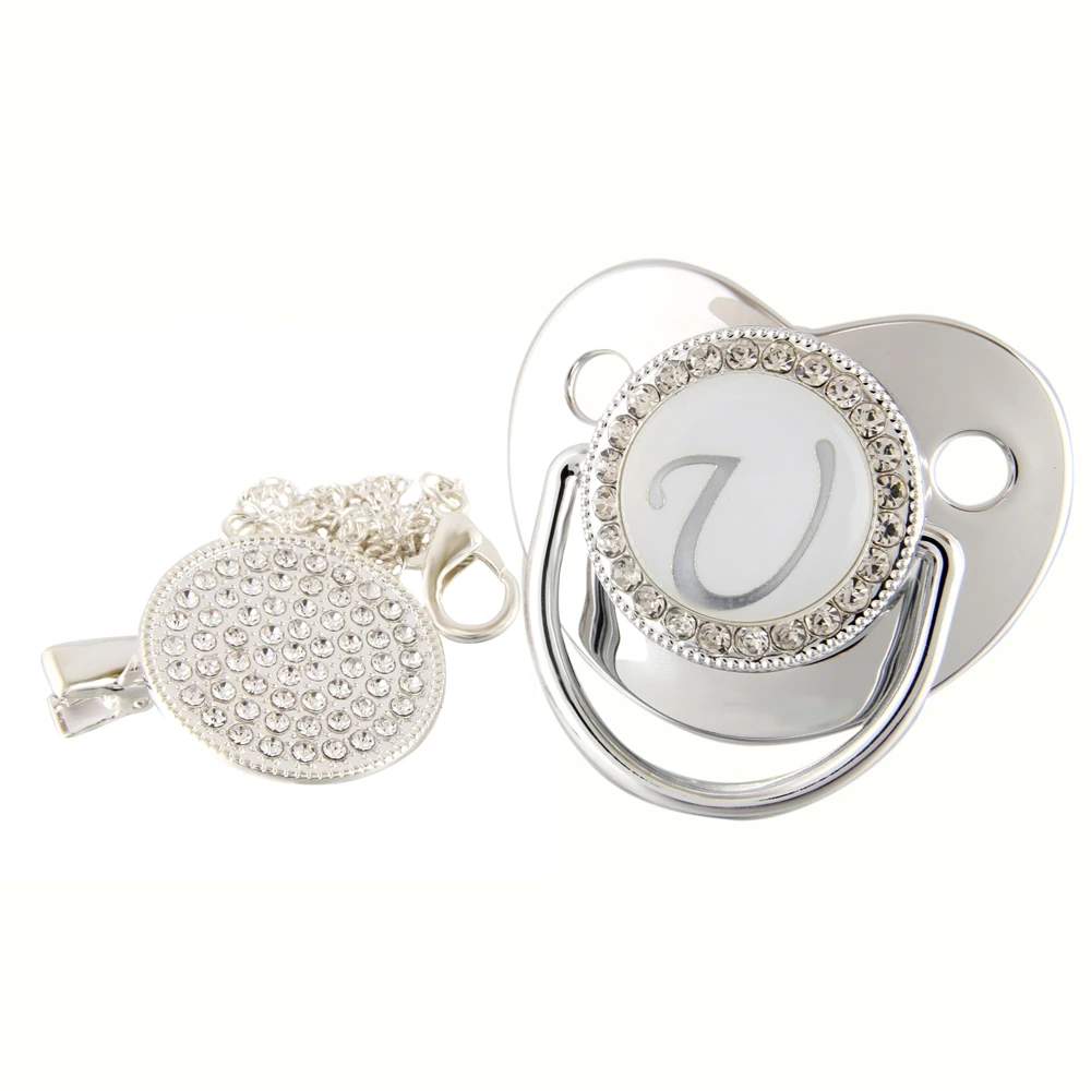 Детские пустышки с надписью, серебристые силиконовые пустышки с 26 буквами, стразы, соски для младенцев, подарок для душа