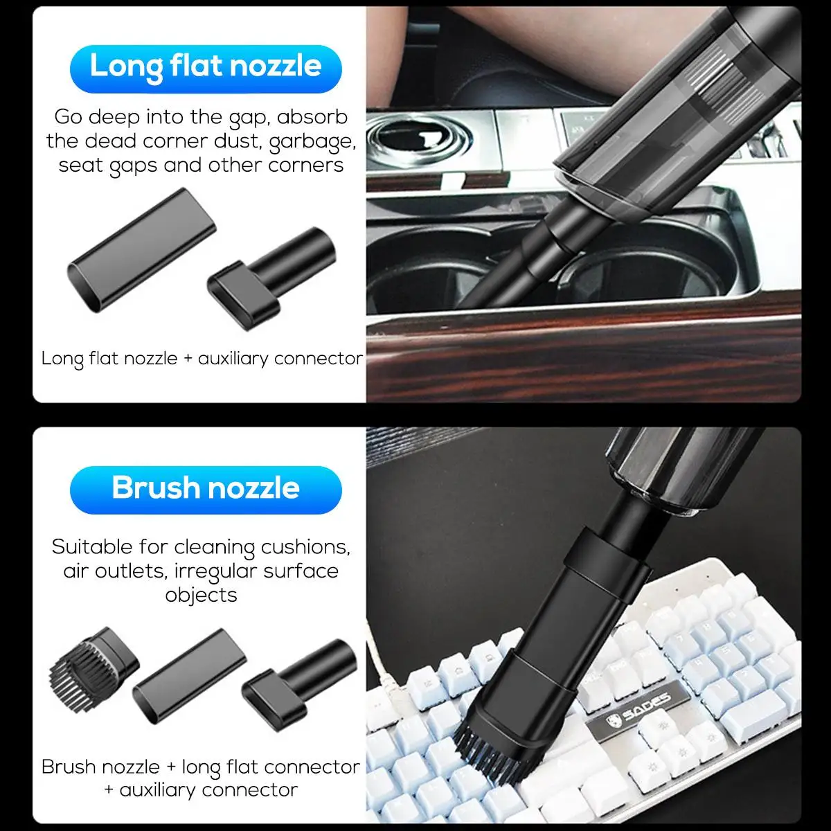-Двигатель мощностью 120 Вт обеспечивает 6 кПа сильного всасывания для очистки влажного материала или сухого мусора для домашней и автомобильной очистки.