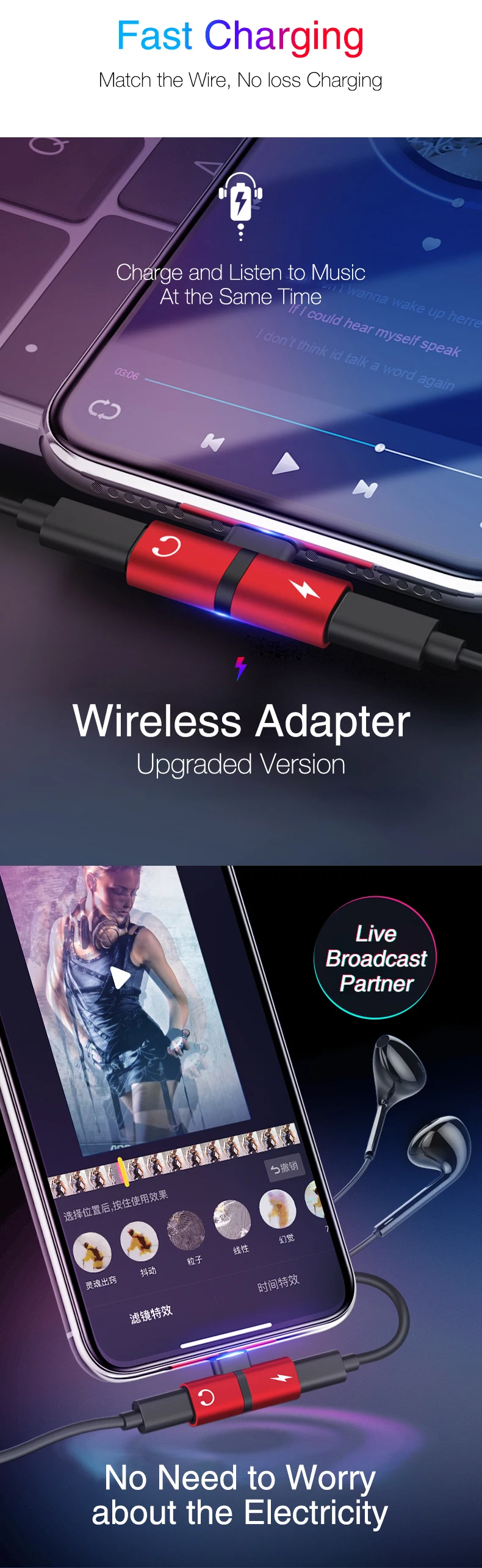2. Многофункциональный адаптер для зарядки и прослушивания музыки.
