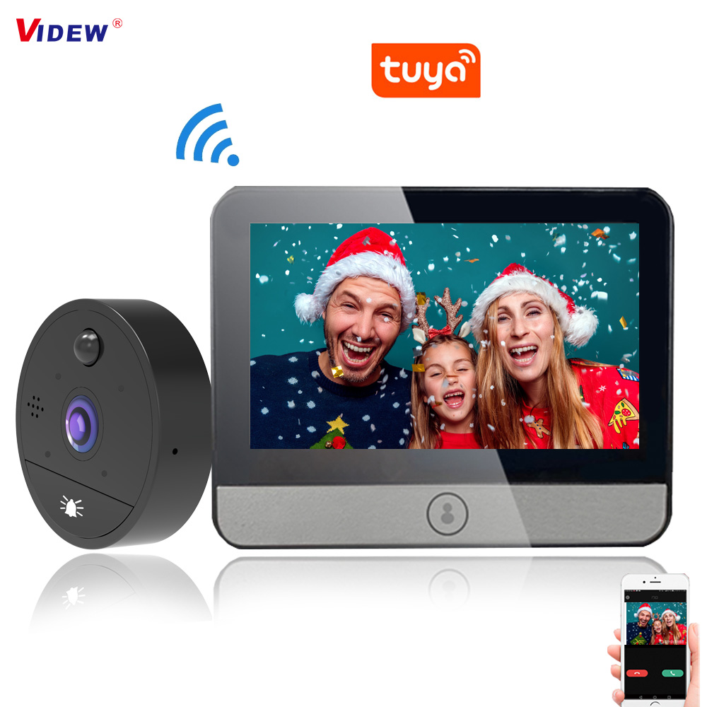 Дверной глазок Wi-Fi и приложение Tuya поддерживаются. Дверной звонок с беспроводным подключением к беспроводному WIFI роутеру. Подключив беспроводной маршрутизатор дома, мы можем реализовать мониторинг между ручным концом и дверным звонком. Вы можете подключить устройство мониторинга к смартфону менее чем за 10 секунд с помощью приложения Tuya.