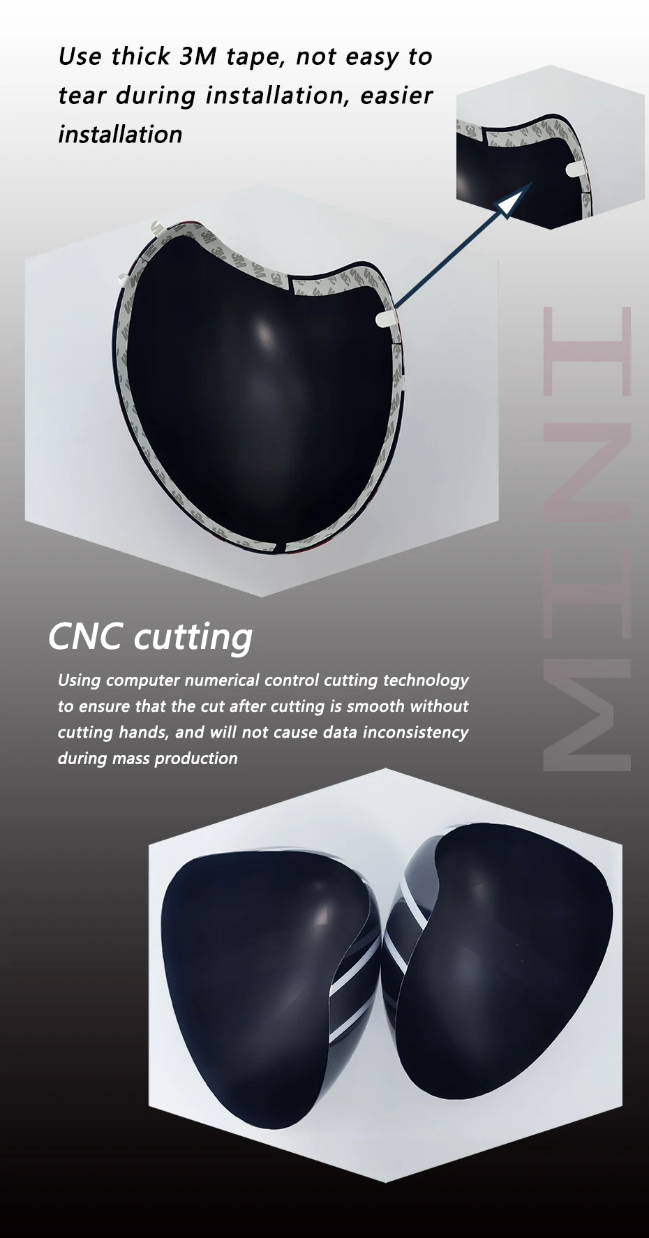 Использование PC инженерных материалов, гальванических и полировочных процессов, глянцевая краска, четкие узоры, устойчивость к истиранию и царапинам, обеспечивают более прочную защиту автомобиля