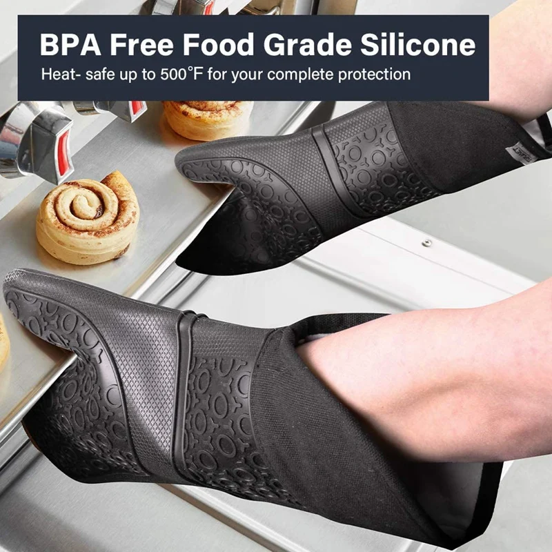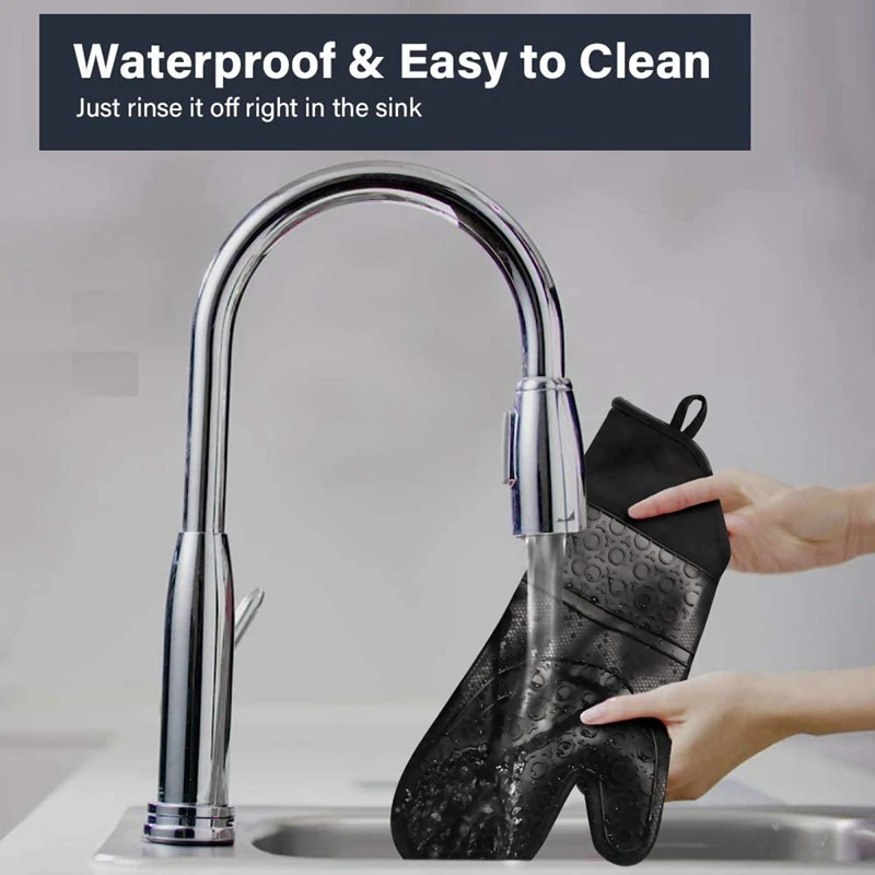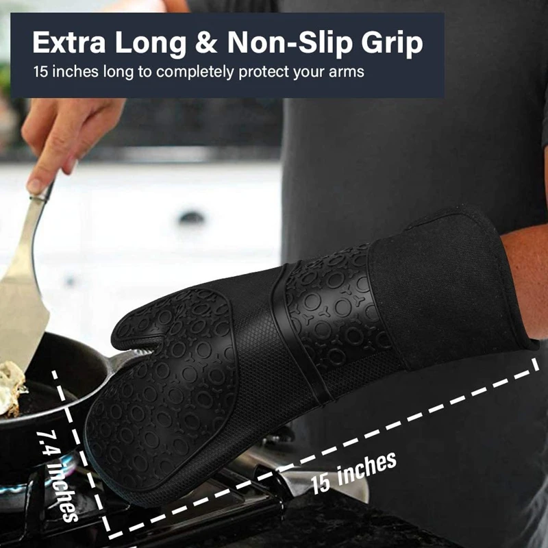 Удобные и очень длинные, легко чистятся-внутренние силиконовые перчатки для духовки обшиты мягким стеганым хлопком, что обеспечивает вам отличный комфорт! С размером 15 дюймов (около 38,1 см) перчатки для духовки также могут защитить ваши запястья и предплечья, даже если ваши руки согнуты. В отличие от других хлопковых перчаток, наши силиконовые перчатки для духовки не будут окрашиваться, прессовывать, рвать или поглощать запахи. Перчатки можно легко чистить, просто промывая мылом.