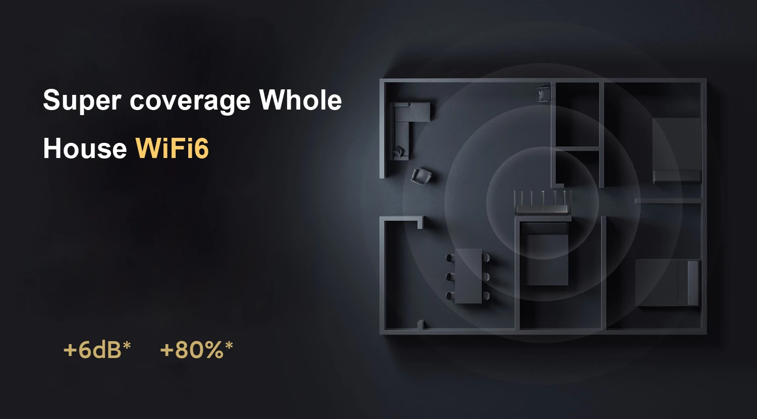 6000 м скорость беспроводной Спецификация уровень роутера, в том числе 2,4G Частотный диапазон скорости 574 Мбит/с, 5G Частотный диапазон скорости 4804 Мбит/с и AIoT антенна скорость 583 Мбит/с.