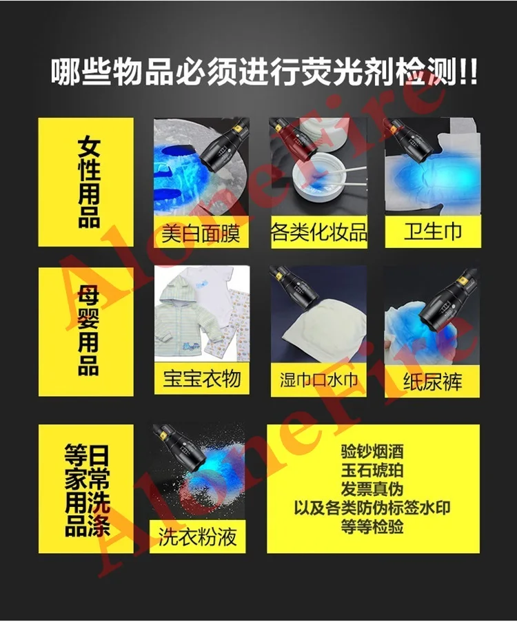 Вообще говоря, это легче идентифицировать флюоресцентных веществ в объекте при использовании светильник флэш-светильник, в то время как флюоресцентных веществ не так сильно при использовании темно флэш-светильник.