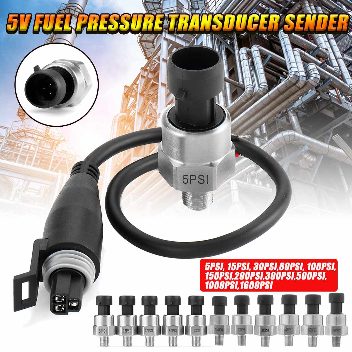 5V 1/8NPT датчик давления топлива из нержавеющей стали для масла, воздуха, воды 5/15/30/60/100/150/200/300/500/1000/1600 Psi