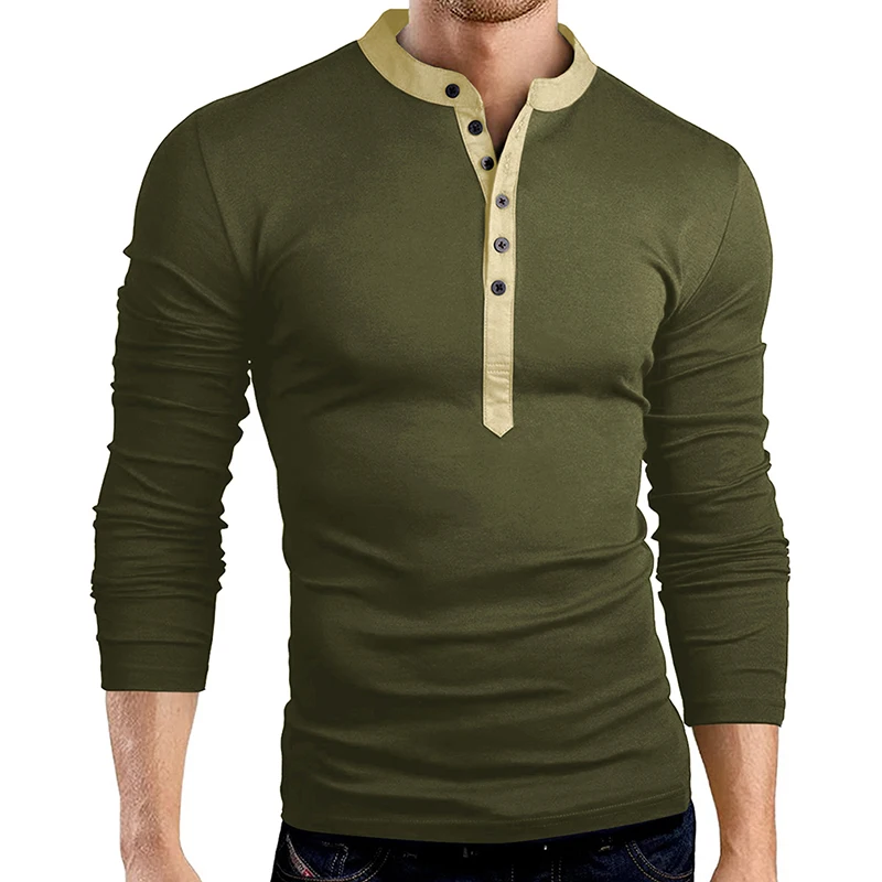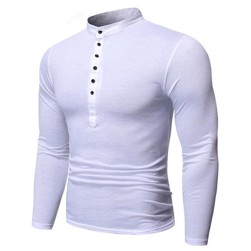 Весенне-осенняя мужская облегающая футболка с v-образным вырезом и пуговицами, футболка с длинным рукавом, повседневные топы, футболки на пуговицах, Лидер продаж