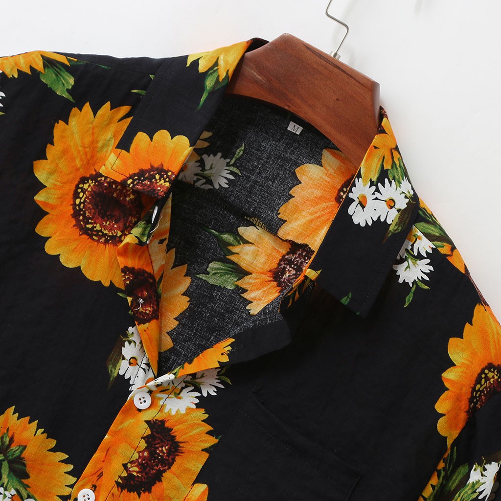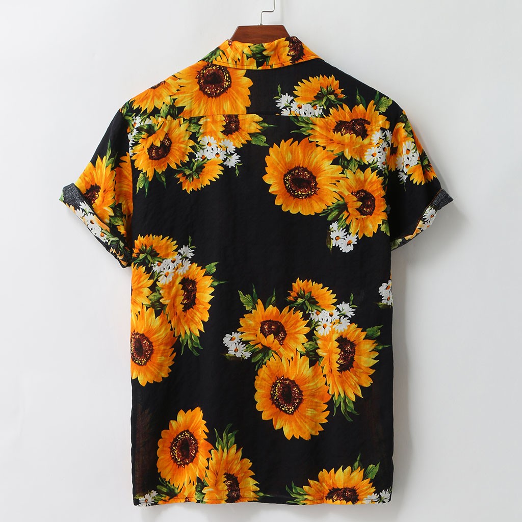 Мужская разноцветная летняя свободная Гавайская Повседневная рубашка с коротким рукавом и пуговицами