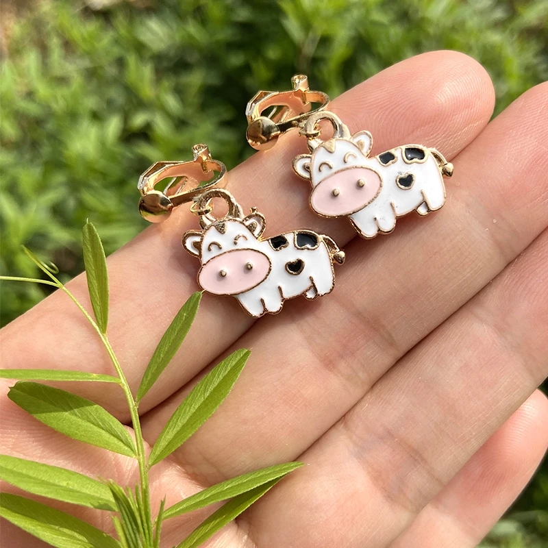 Cartoon cow Clip On Earrings No Hole Ear Clips Lovely cow Earring Without Piercing Minimalist Earrings Jewelry CE515M