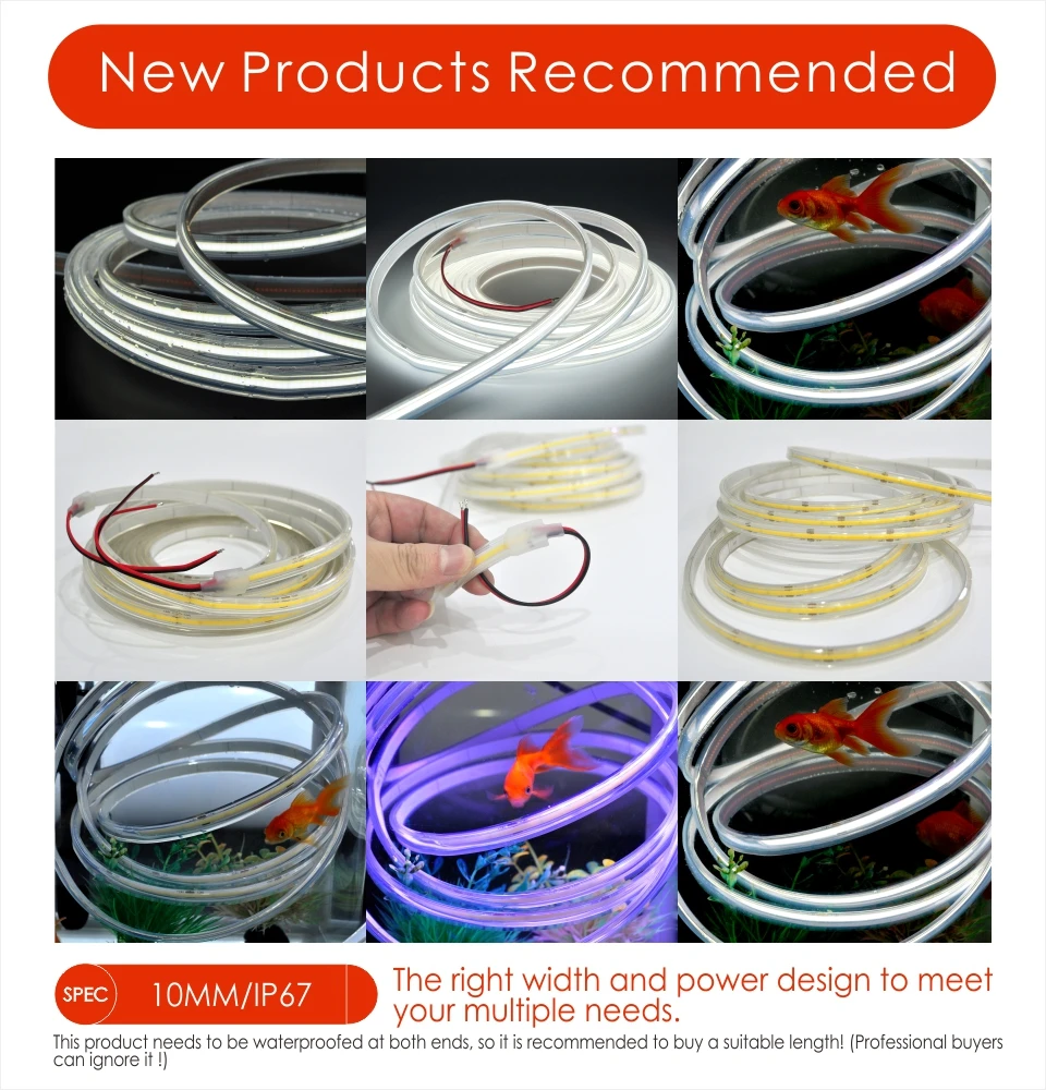 > Основной светильник использует высокопроизводительный светодиодный блок высокой яркости COB, 480 чипов на метр и высокую теплопроводность FPC, микросхемы большого размера, низкое использование тока, высокая надежность;> внешний слой завернут силикагелем, хороший Светильник обеспечивает высокую производительность при передаче, а также посылка для прессования, чтобы обеспечить его отличную водонепроницаемость, защиту от ультрафиолета, Желтая и мелкая устойчивость, и хорошая гибкость! > Два конца являются водонепроницаемыми, и линия ввода установлена, что более удобно для установки!