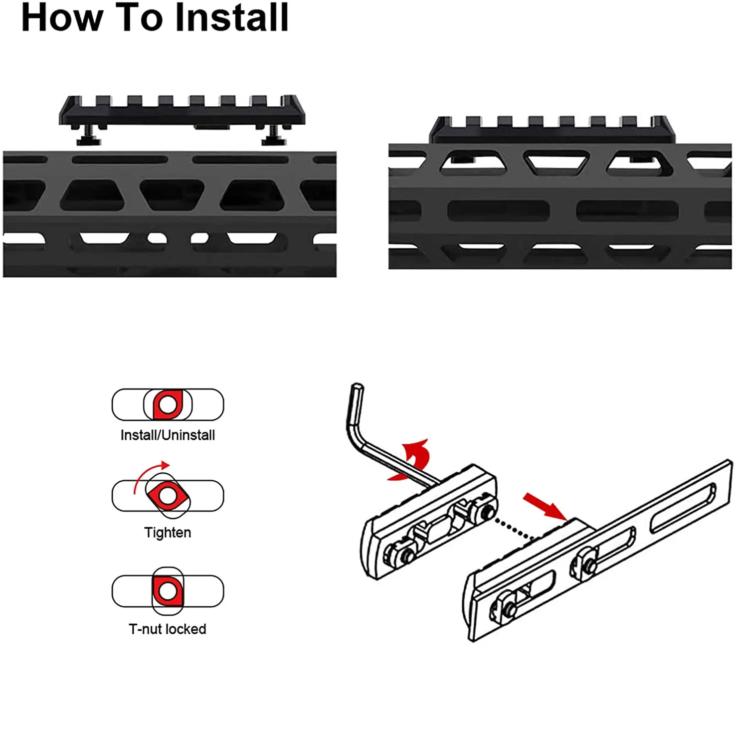 ❖Picatinny Rails предоставляет вам 10 наборов винтов с плоской головкой TORX, 10 наборов запирающих Т-гаек (бесплатно 2 дополнительных набора винтов и Т-образных гаек).
