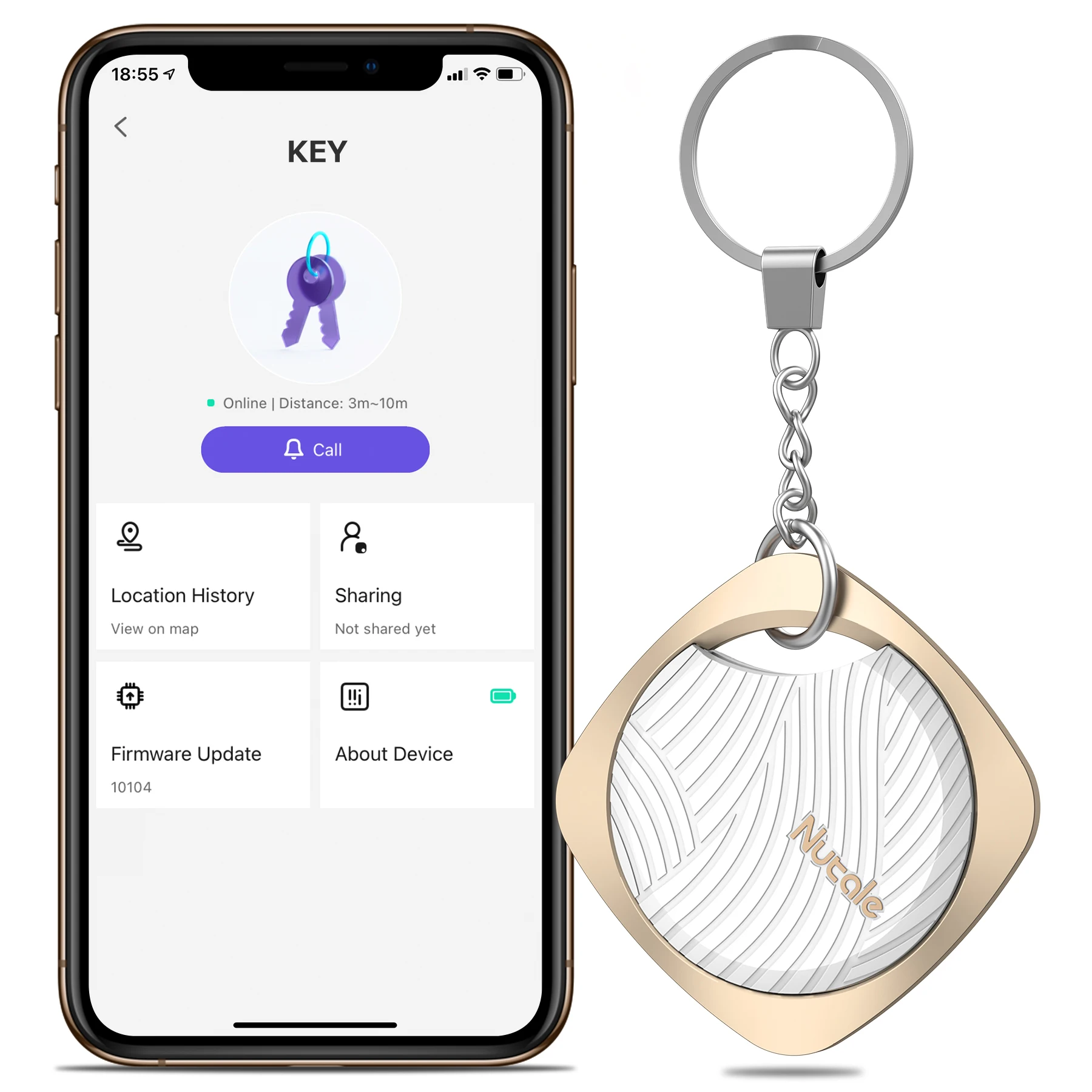 【Поиск ключей с SIRI SHORTCUT】Изюминкой этой новой версии поиска ключей является Siri ярлык. Просто скажите «Siri», найдите мой ключ «», чтобы сделать кольцо для поиска ключей, если у вас есть телефон ios. Приложение Nut запомнит местоположение последнего отключения синего зуба на карте, которое предоставит ключи для поиска потерянных предметов.