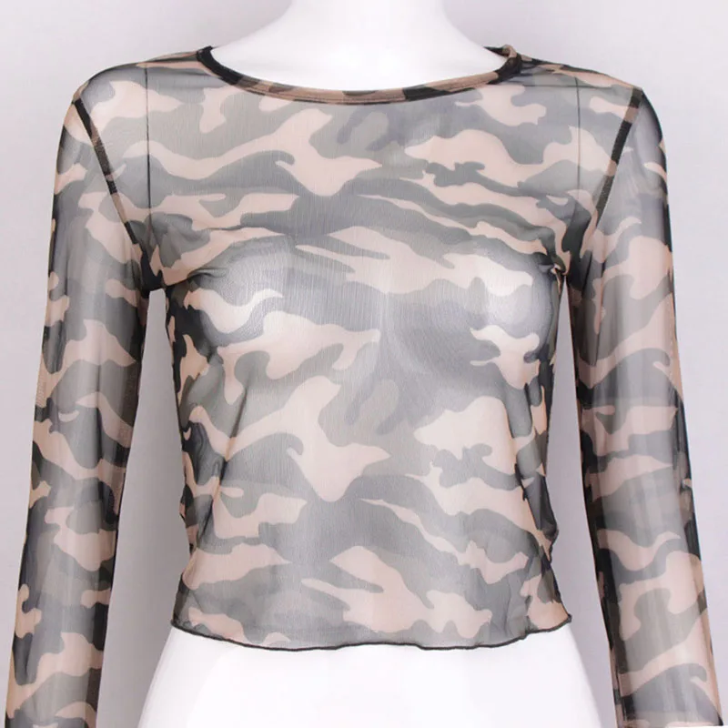 2021 модная женская одежда, повседневная футболка с длинными рукавами, летний укороченный топ, одежда в Военном Стиле, женские камуфляжные футболки