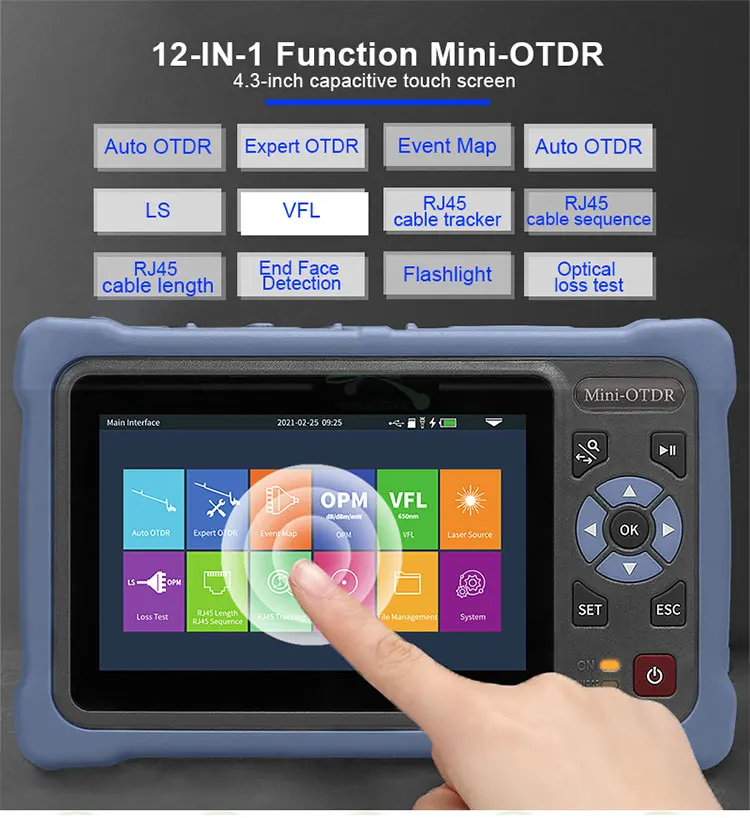 Сенсорный экран. Он объединяет 12 функций, таких как auto OTDR,