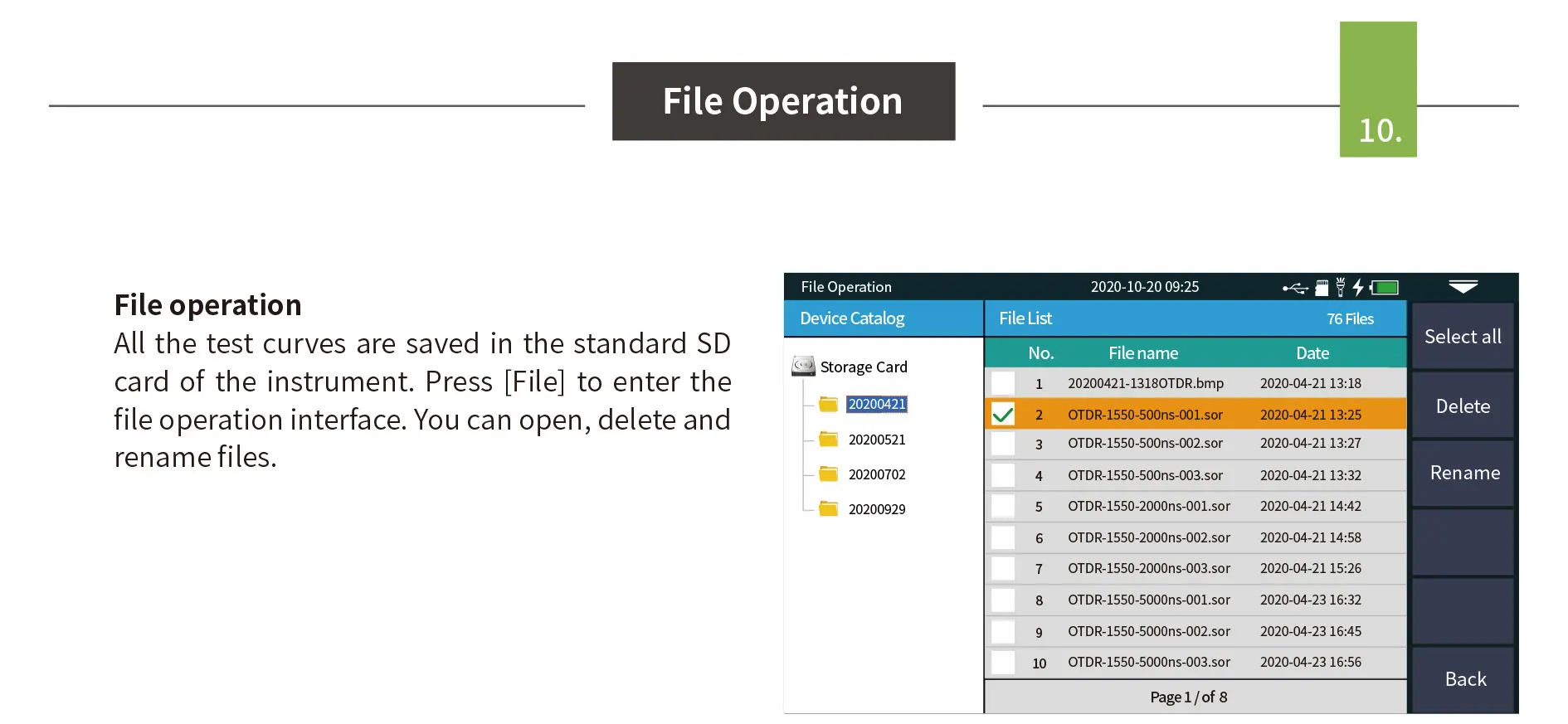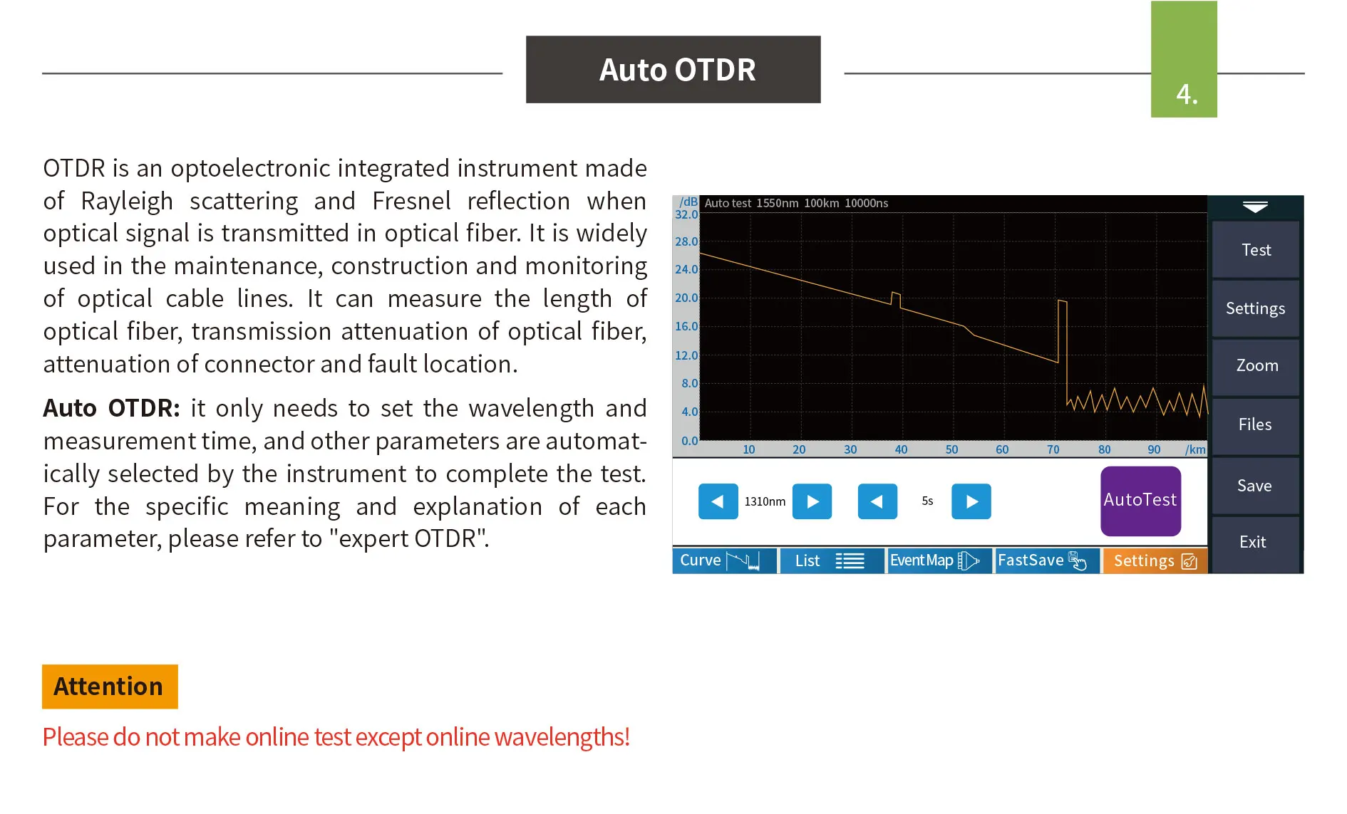 Expert OTDR, карта событий, OPM, RJ45 кабель трекер, и "компьютерный уровень" Управление файлами для удовлетворения различных тестовых требований в различных случаях. OTDR обладает максимальной динамикой