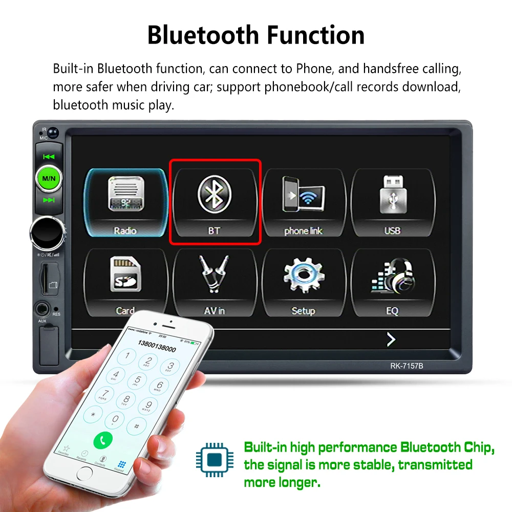 Автомагнитола Podofo универсальная 2DIN с сенсорным экраном 7 дюймов, поддержкой Bluetooth и FM-радио