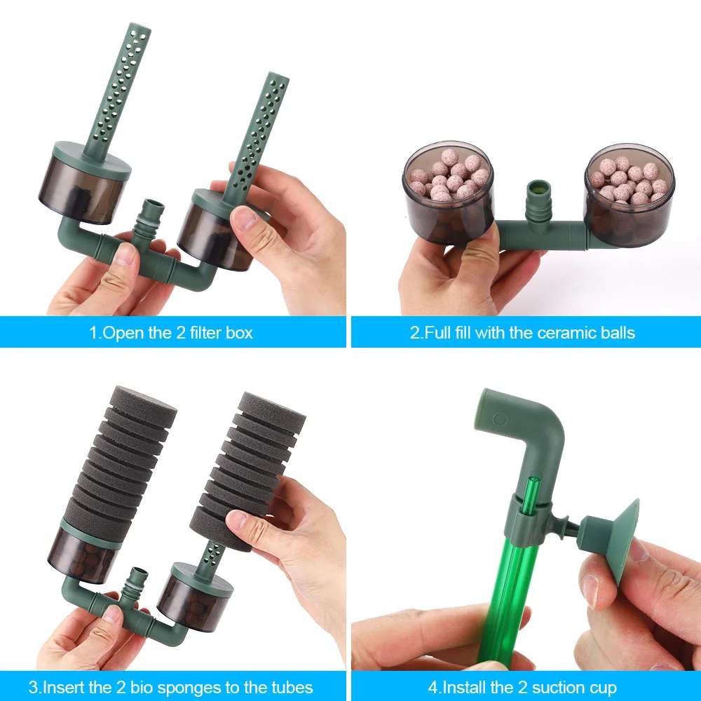 Аквариумный био-фильтр для аквариума, воздушный скиммер с насосом, биохимическая губка, керамические шарики, регулируемый инструмент для очистки