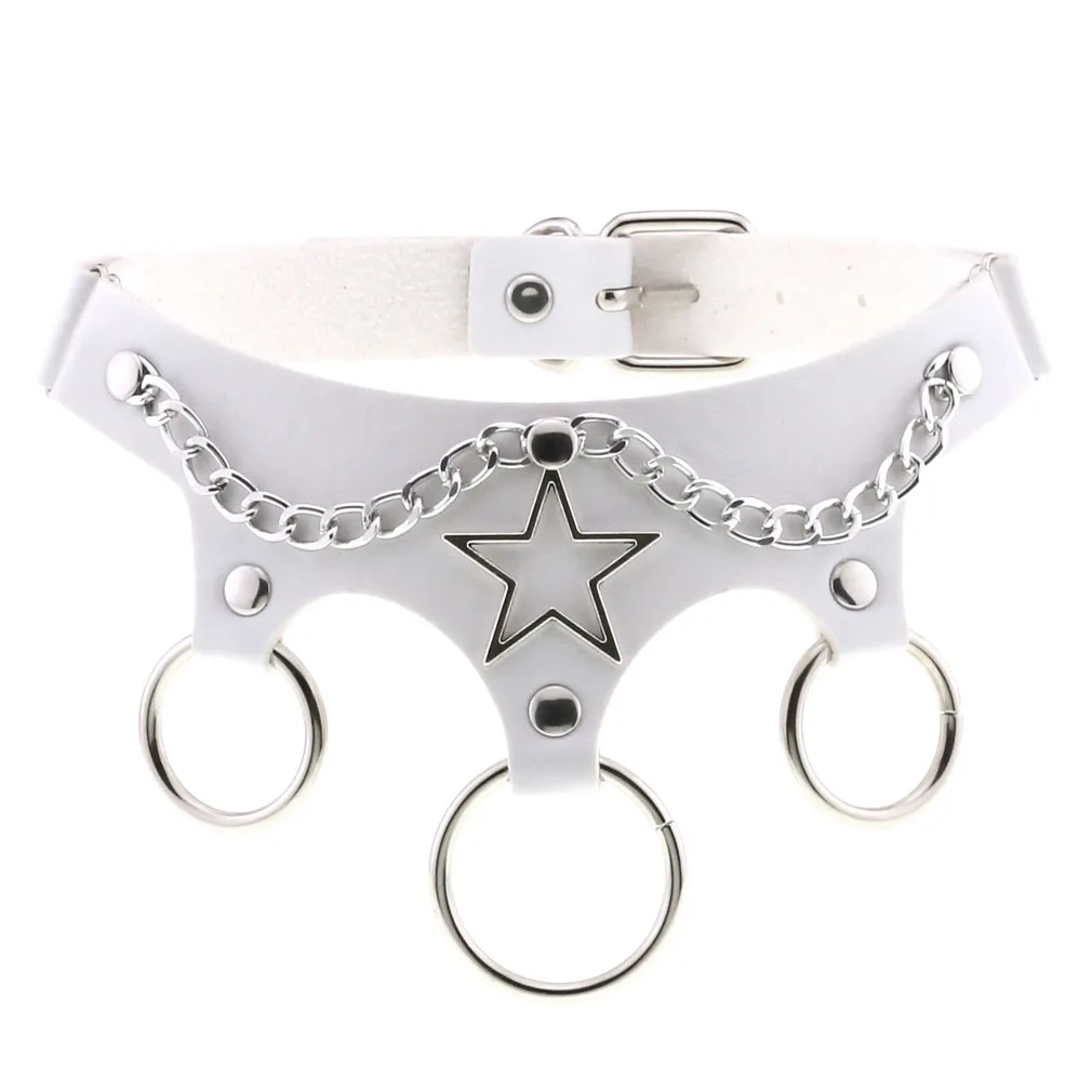 Женское Ожерелье из искусственной кожи в стиле гот-панк, ожерелье-чокер с заклепками и круглыми звездами, Ювелирное Украшение для вечеринки, сексуальные аксессуары для тела, бондаж, фестиваль, косплей, эмо, Харадзюку, 2021