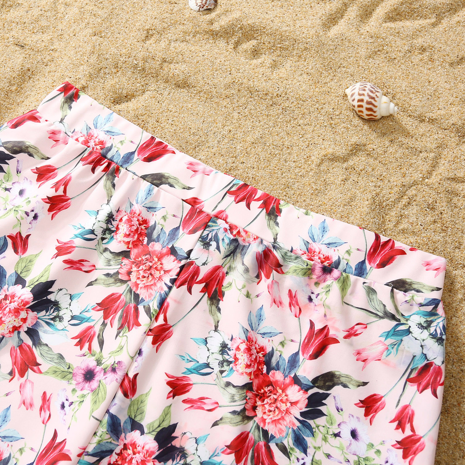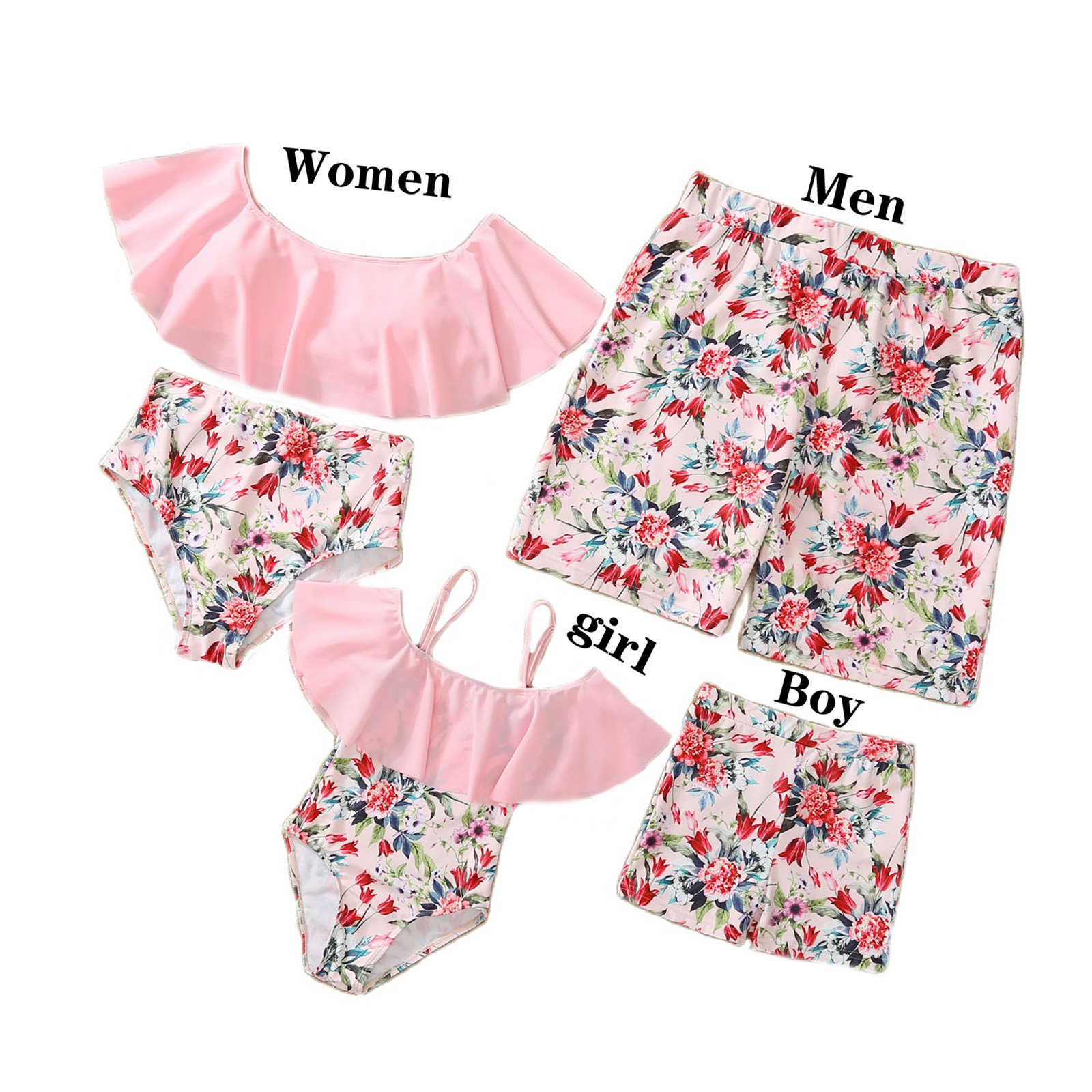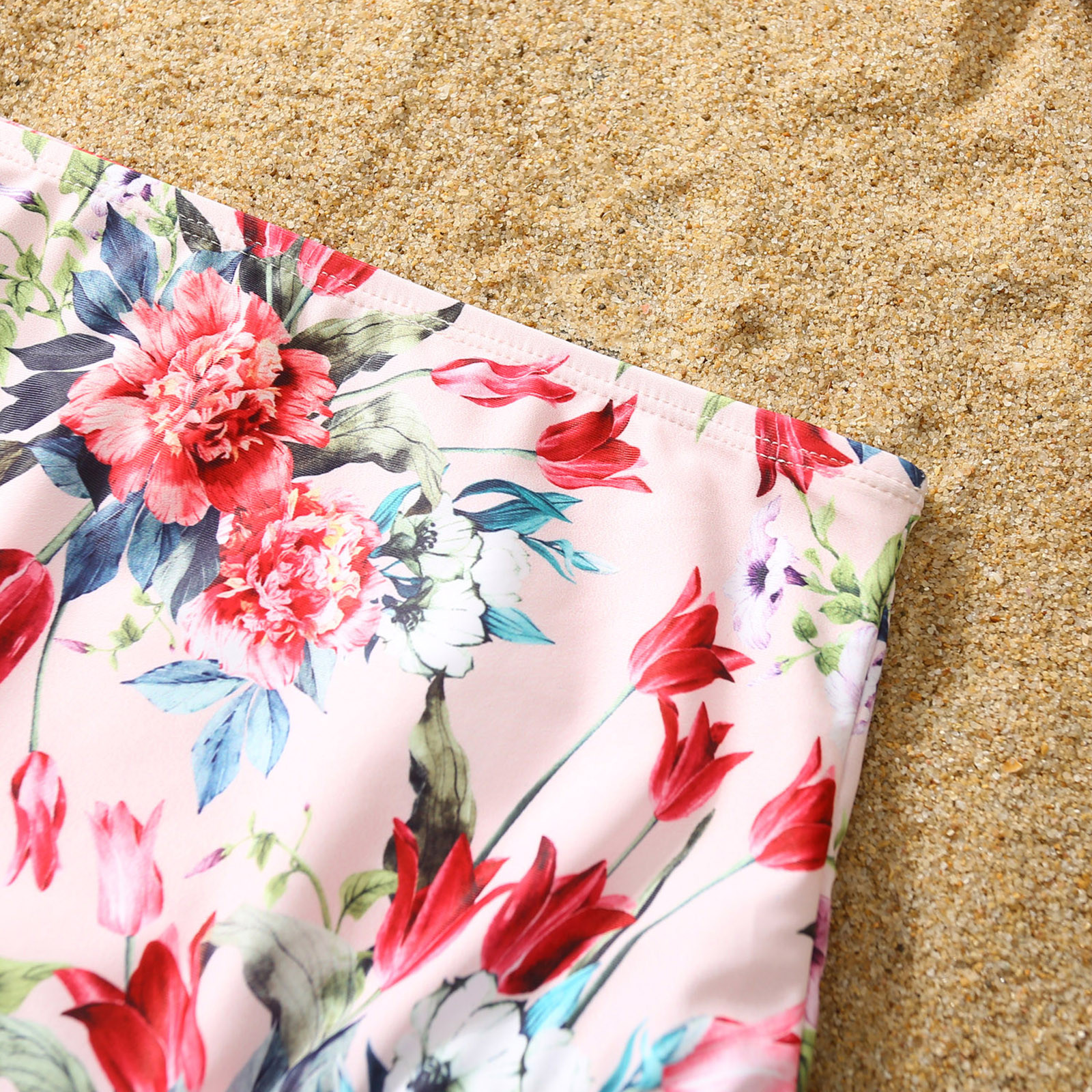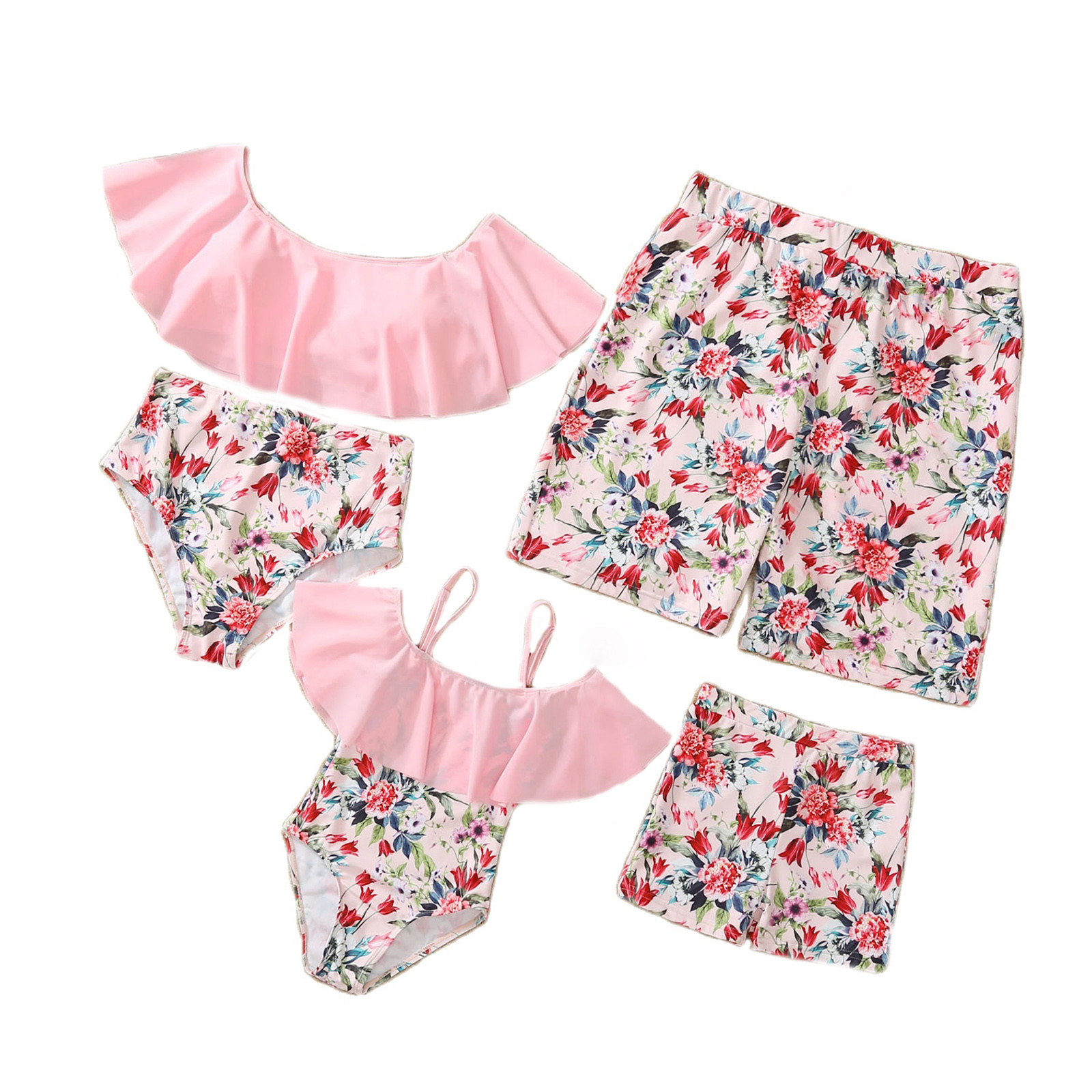 Семейный купальный костюм для родителей и детей; Цвет розовый; Купальник-бикини с краями листьев