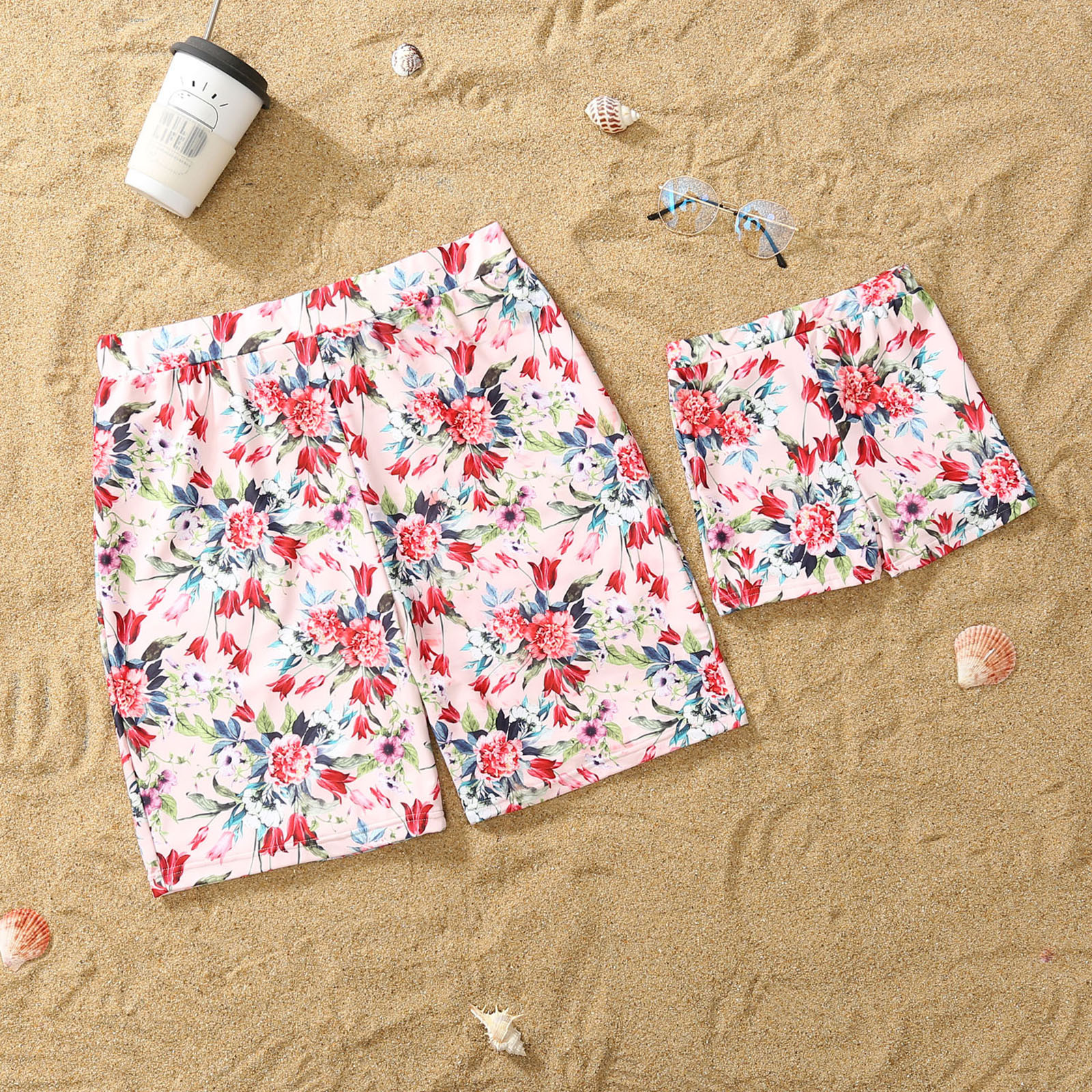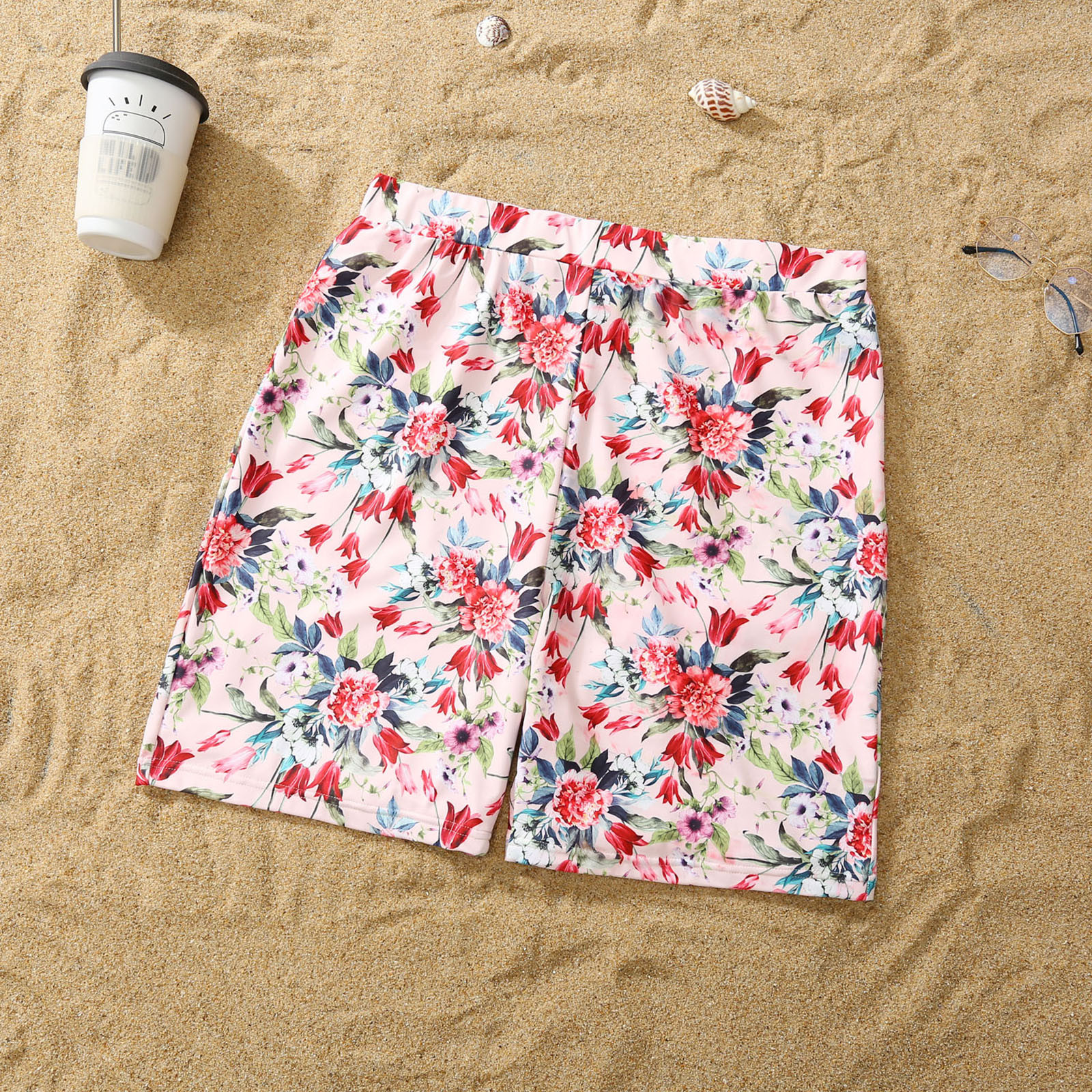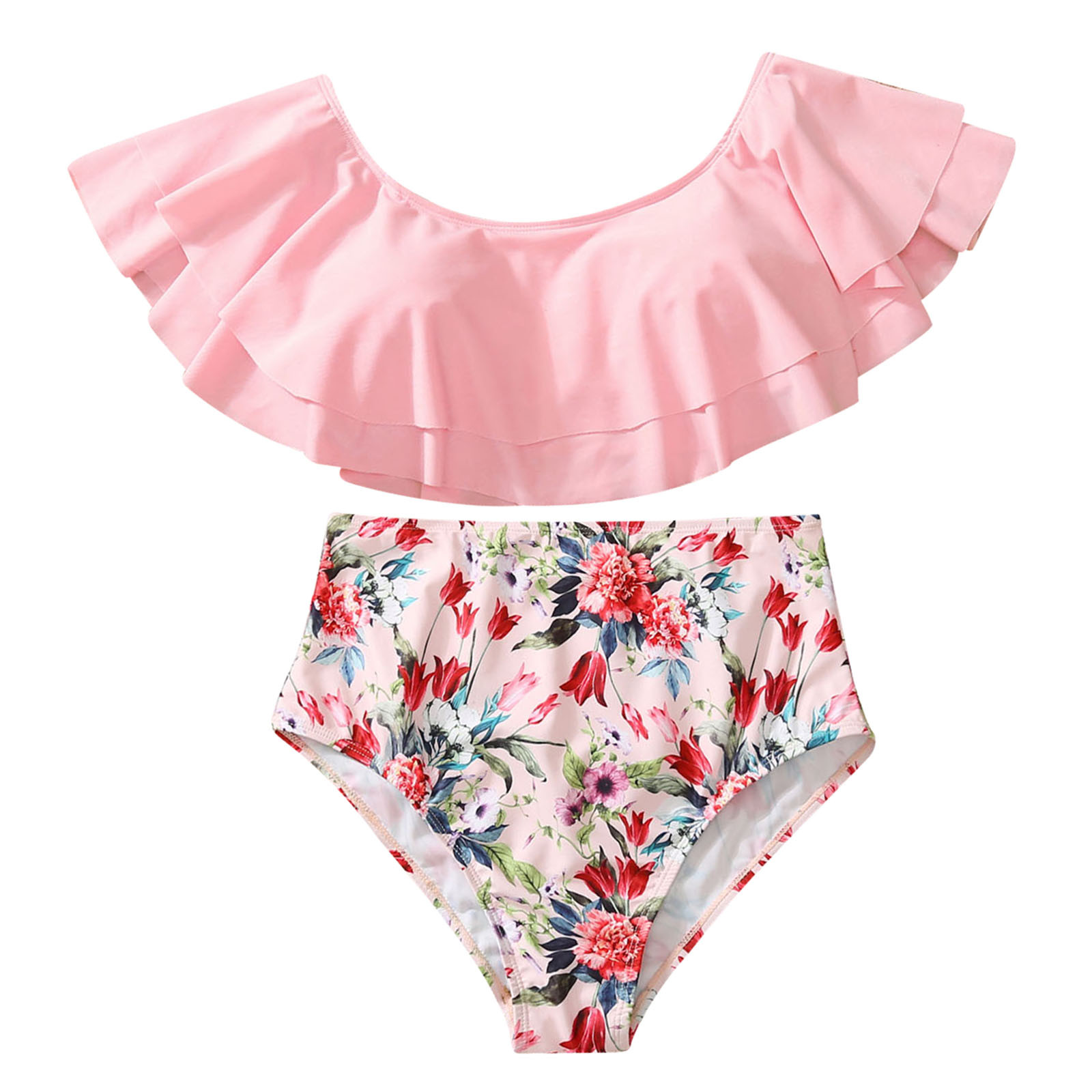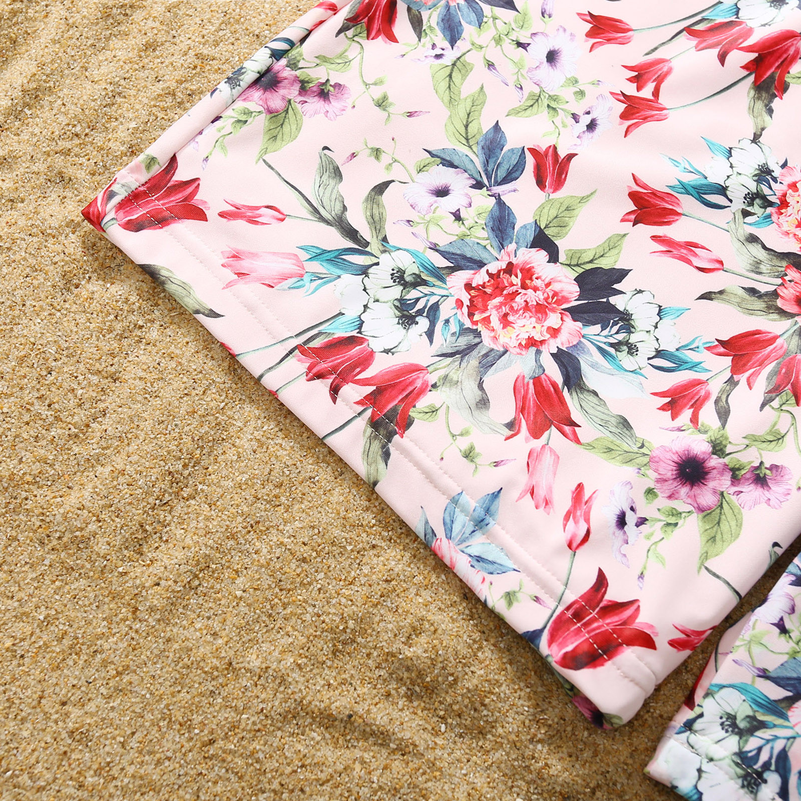 Семейный купальный костюм для родителей и детей; Цвет розовый; Купальник-бикини с краями листьев