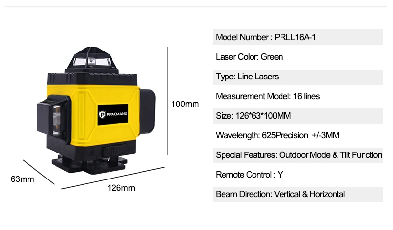 PRACMANU 3*360 лазерный уровень зеленого луча с технологией Bluetooth
