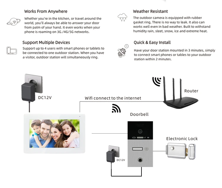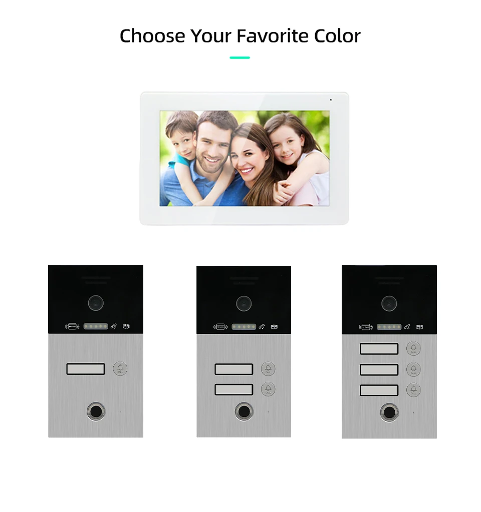 С этой системой домофона можно использовать карты, отпечаток пальца, монитор и телефон для разблокировки двери, что будет удобнее!