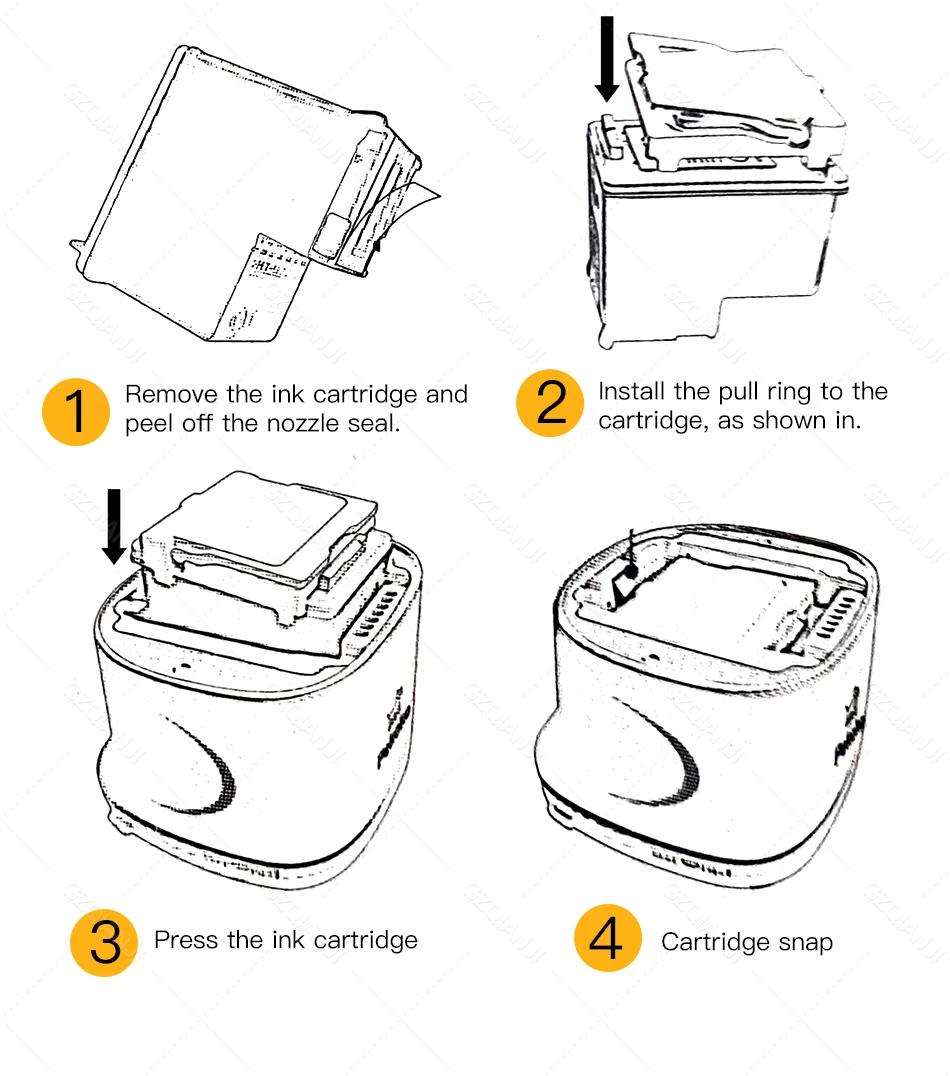 Установите чернил crtidge на чернильный картридж Вытяните кольцо.