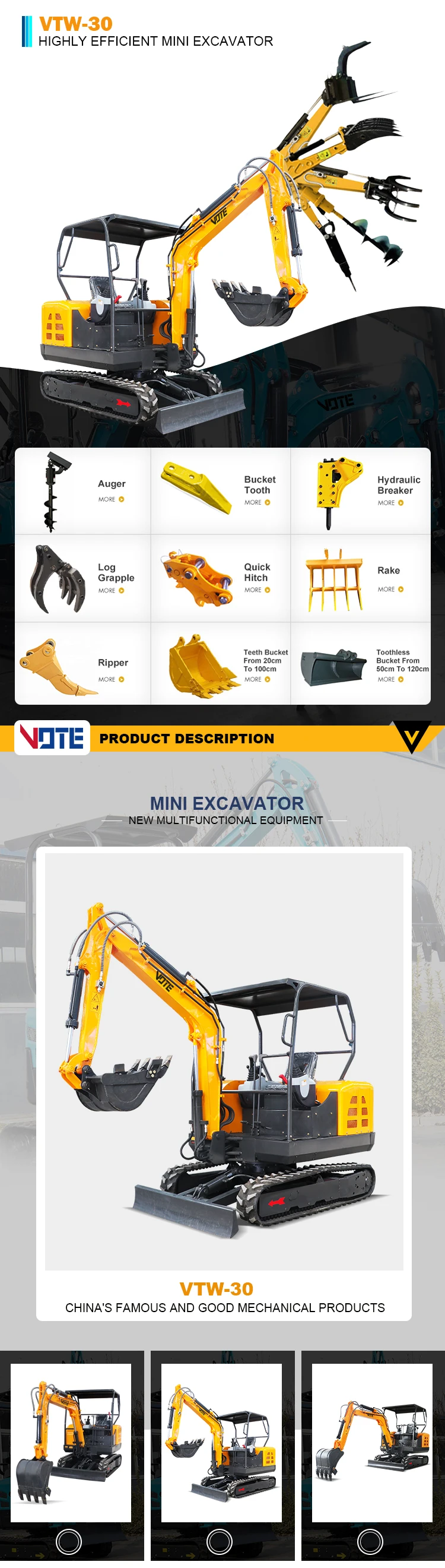 Преимущества мини-экскаватора 1T: Поддержка многофункциональной работы, быстрое крепление аксессуаров, раскопки, дробления, очистки траншеи, бурения и бульдозера;