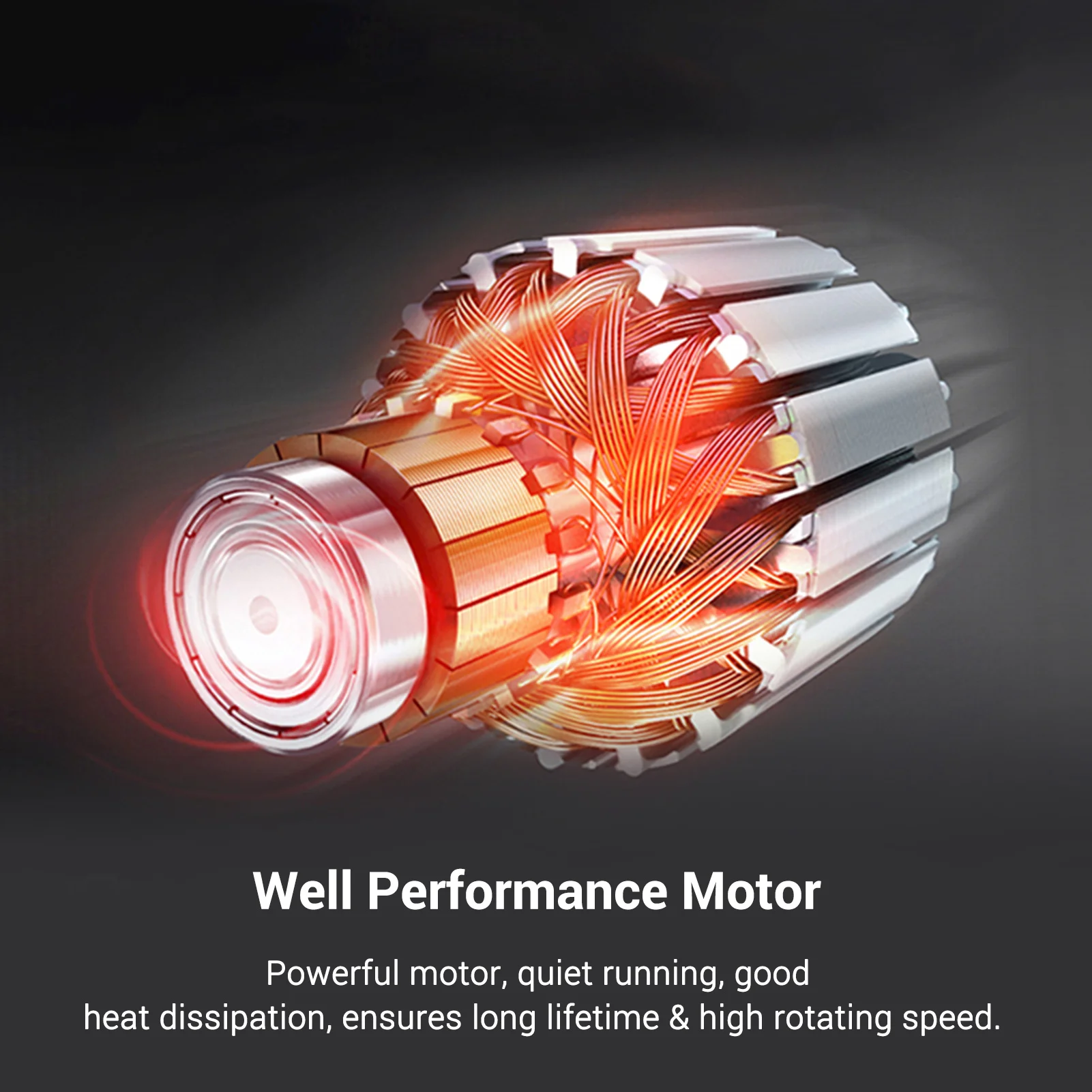 Хорошая производительность двигателя:Мощный двигатель, тихий ход, хорошая теплоотдача, обеспечивает долгий срок службы и высокую скорость вращения.