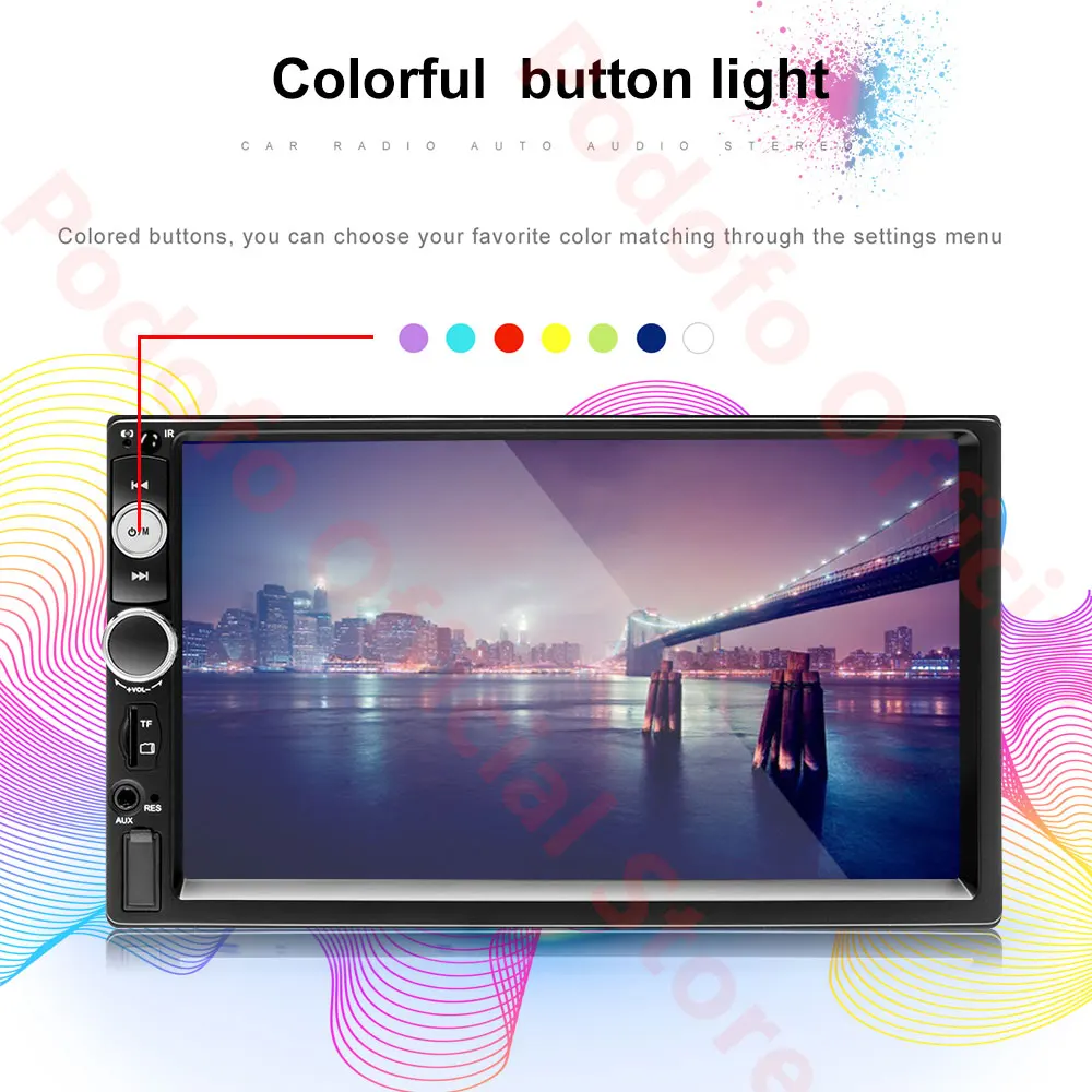 Podofo 2 Din Автомобильный MP5 плеер 7 дюймов сенсорный экран с Bluetooth Встроенный Автомагнитола FM AUX USB SD HD рулевое колесо управление Зеркало Ссылка