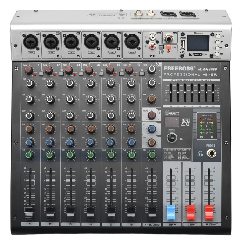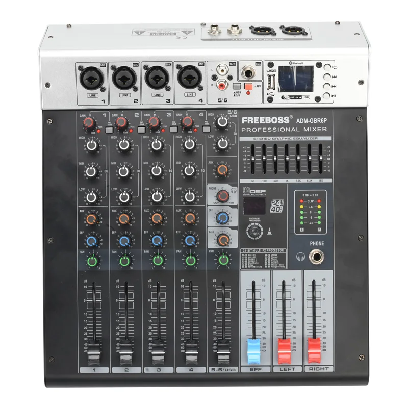 Freeboss миксер аудио 6-канальный USB Функция Bluetooth караоке dj определения консоль с 48В Мощность звукомикшер