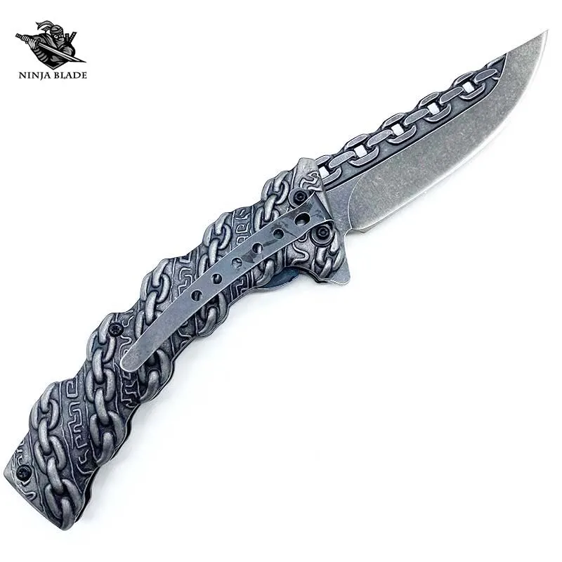 1. The Hell Chain Jackknife-идеальный выбор для ежедневного использования и коллекции. 2. Острый вручную закаленный клинок обработан промывкой камня, острым и профилактикой коррозии. 3. Красиво вырезанная ручка удобна для захвата. Длина клинка: 8,5 см/3,5" Толщина клинка: 0,3 см/0,12" Длина в сложенном виде: 12 см/4,7" Длина в разложенном виде: 20,5 см/8,1" Вес: 198,5 г/7 унций Материал ножа: нержавеющая сталь Материал клинка: 7Cr17Mov Технология: рельеф высокоточной резной ручки ножа Посылка: картон