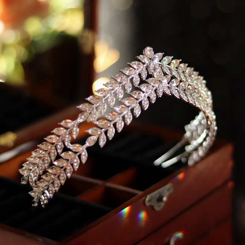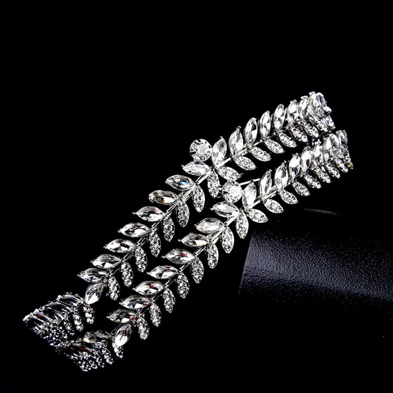 Барокко Ручной Работы Хрустальный Лист Двойной ободок для волос Роскошная Свадебная Корона-Тиара Стразы пышная диадема на выпускной вечер свадебные аксессуары для волос